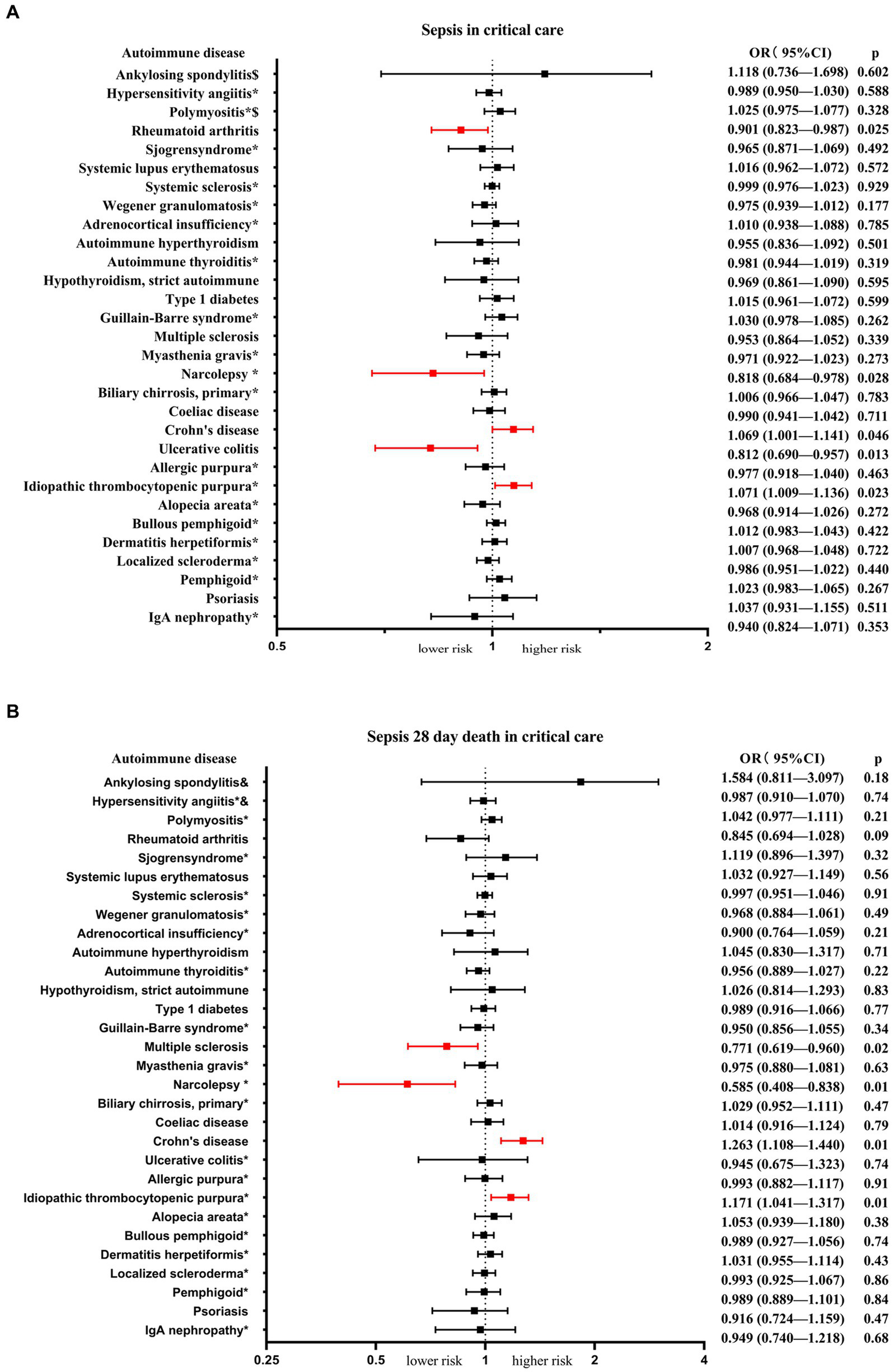 Risk of autoimmune diseases for sepsis 28-day mortality in critical care