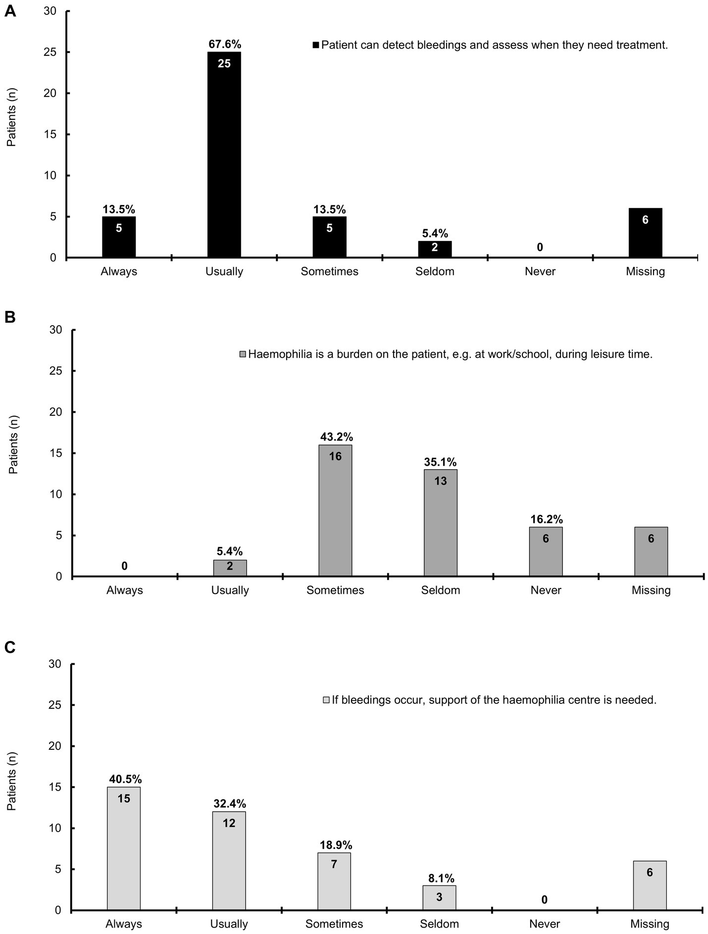 This survey aimed to investigate the care reality and QoL of patients with mild hemophilia, as daily problems and restraints may remain largely neglected (7).