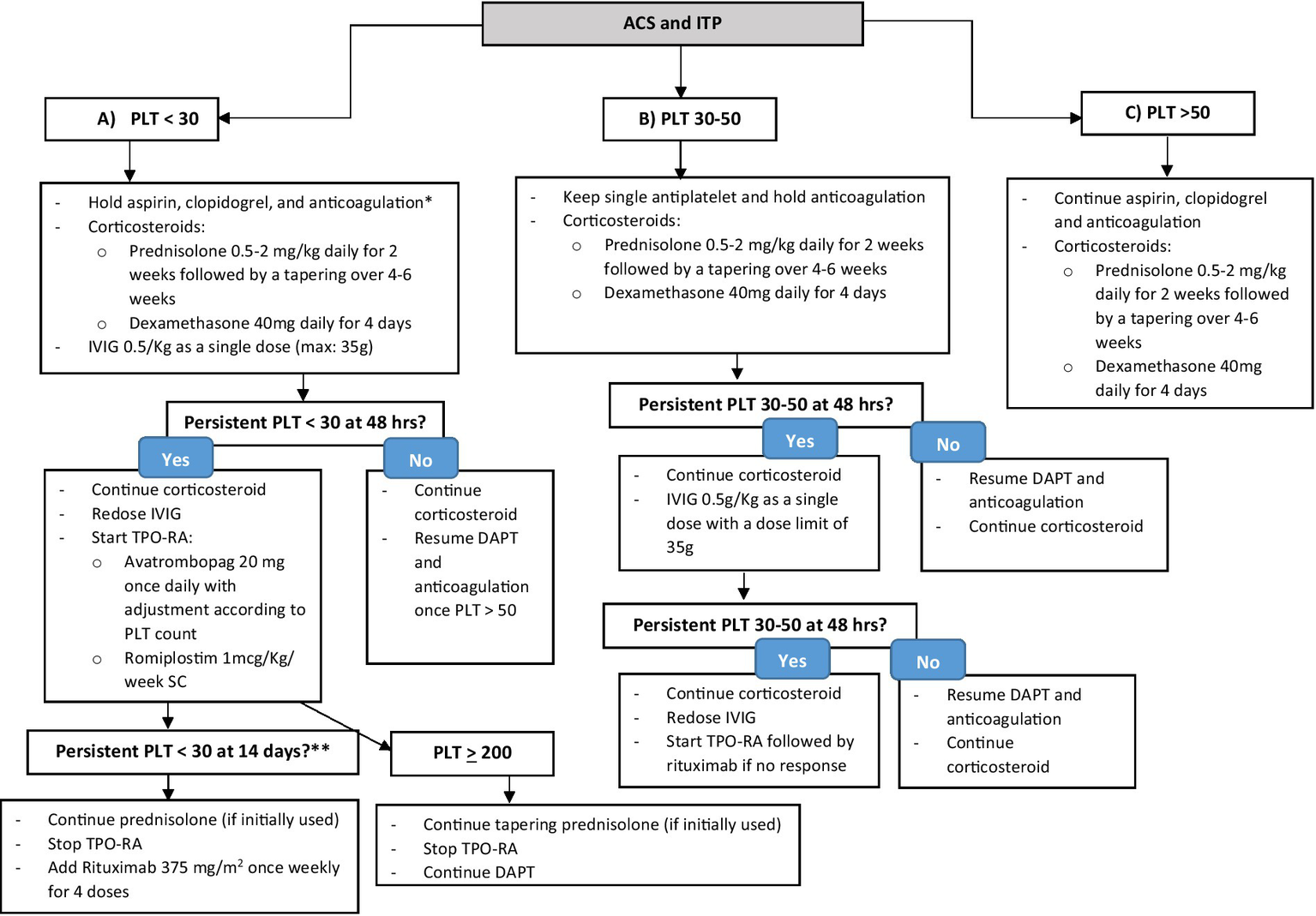 immune thrombocytopenia, acute coronary syndrome, corticosteroids, intravenous immunoglobulin, thrombopoietin receptor agonist, rituximab