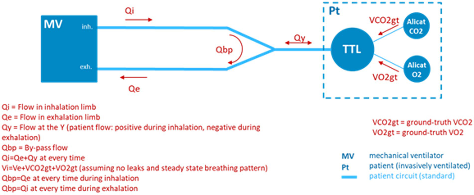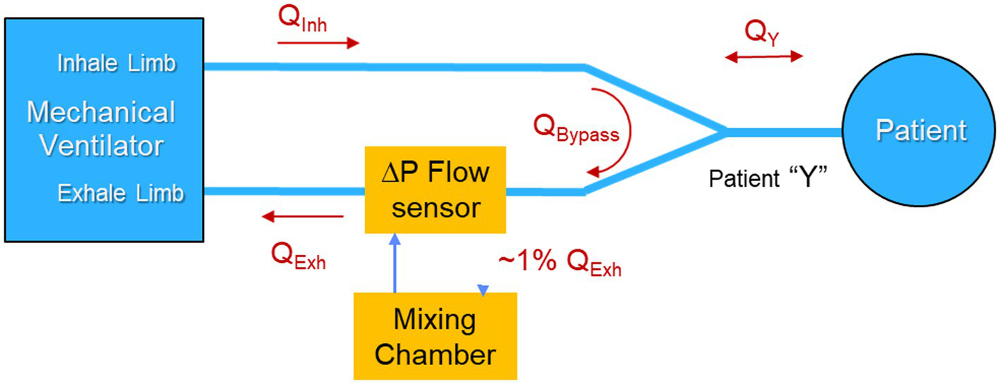 From a signal-to-noise perspective, the patient Y, so named because it joins the inhale and exhale limbs of the ventilator at the mouth of the patient, is the best location for a metabolic sensor to sample since it provides direct access to the patient inhale and exhale flow rates and gas concentration, while excluding the dilution effects of ventilator blow-by flow. In fact, this is the location that existing metabolic sensors designed to make measurements of ventilated patients, employ.