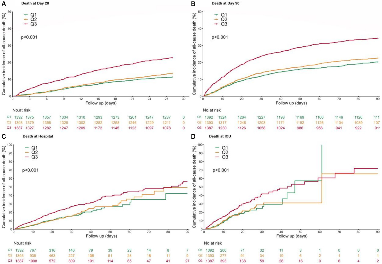 | LOS-ICU, Mean ± SD (day) | 7.20 ± 8.87 | 5.76 ± 7.11 | 7.09 ± 8.25 | 8.74 ± 10.66 | < 0.001 |