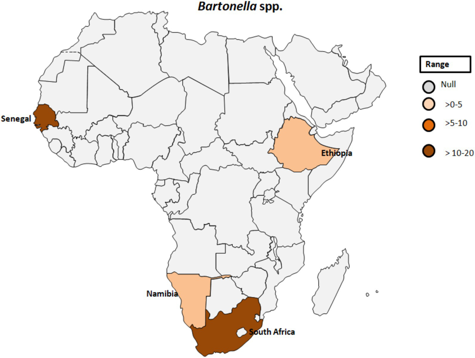 | 2019–2020 | South Africa | 14 | 6 | 43 | PCR | Blood | 16S rRNA | (50) | |