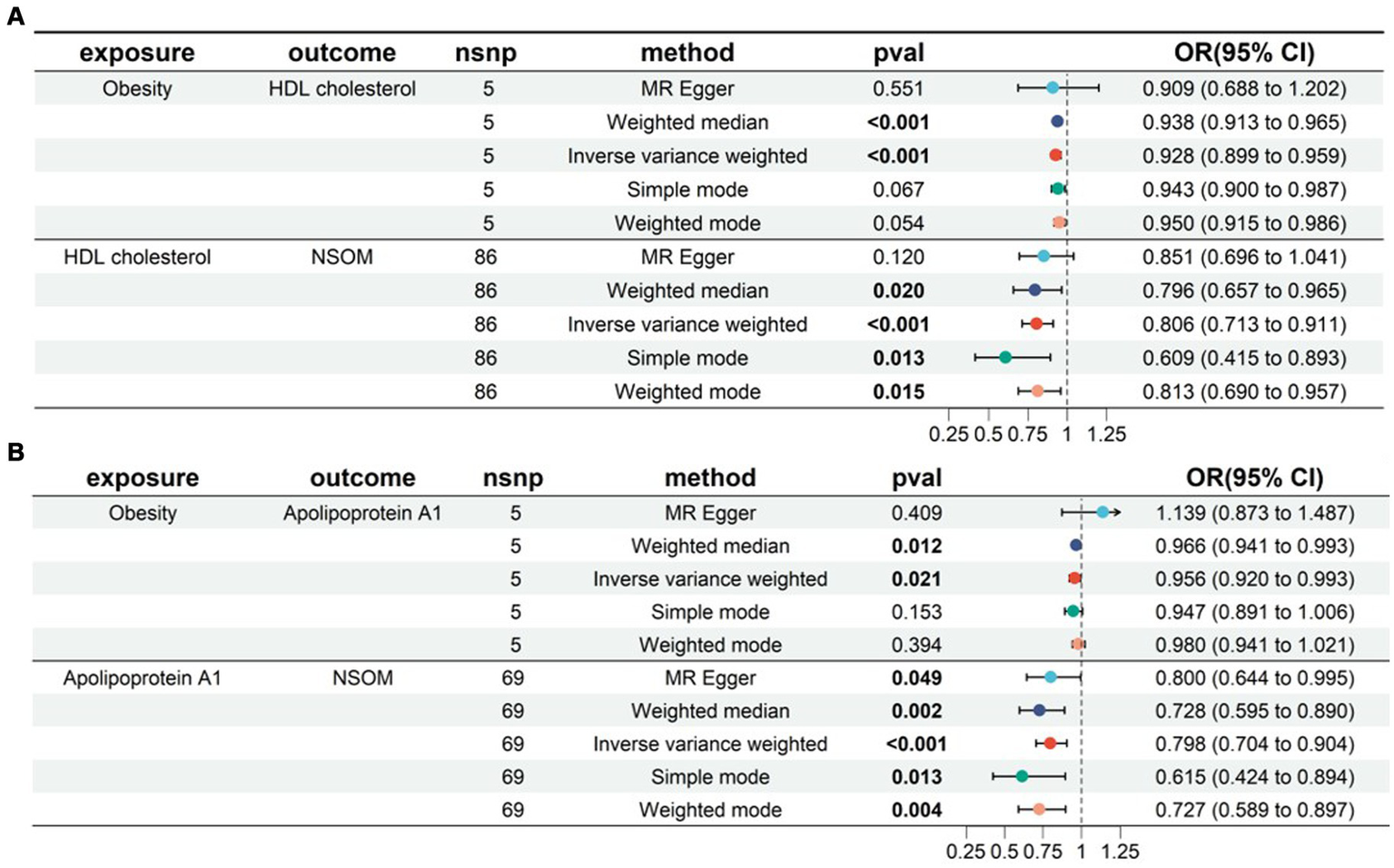 | Obesity | Apolipoprotein A1 | NSOM | 0.162 | −0.045 | −0.226 | 0.01 | 0.267 | 0.063 |