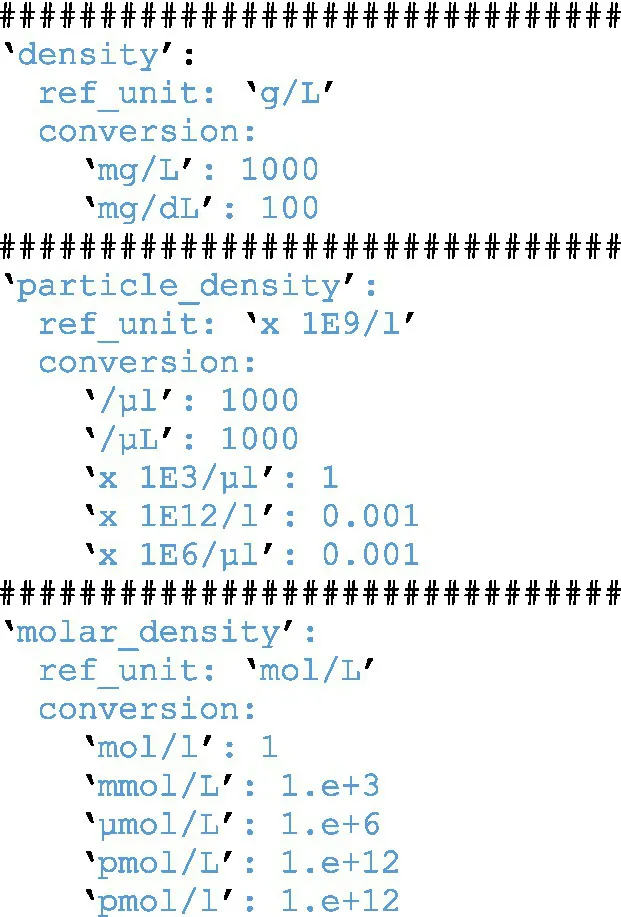 Code Section 2: Automated conversion of units during import and plausibility check.