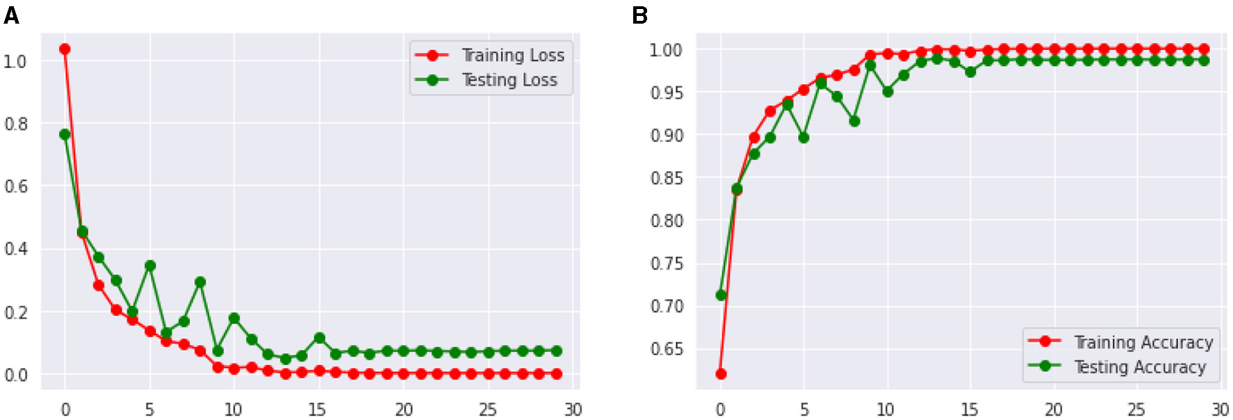 The CNN models' performance was assessed using Analysis Plots for Loss and Accuracy during training and testing and the Confusion Matrix. The Confusion Matrix is utilized to calculate performance metrics such as Accuracy, Precision, Recall/Sensitivity, and F1 Score, which provide a complete picture of the proposed CNN model for the intended classification job.