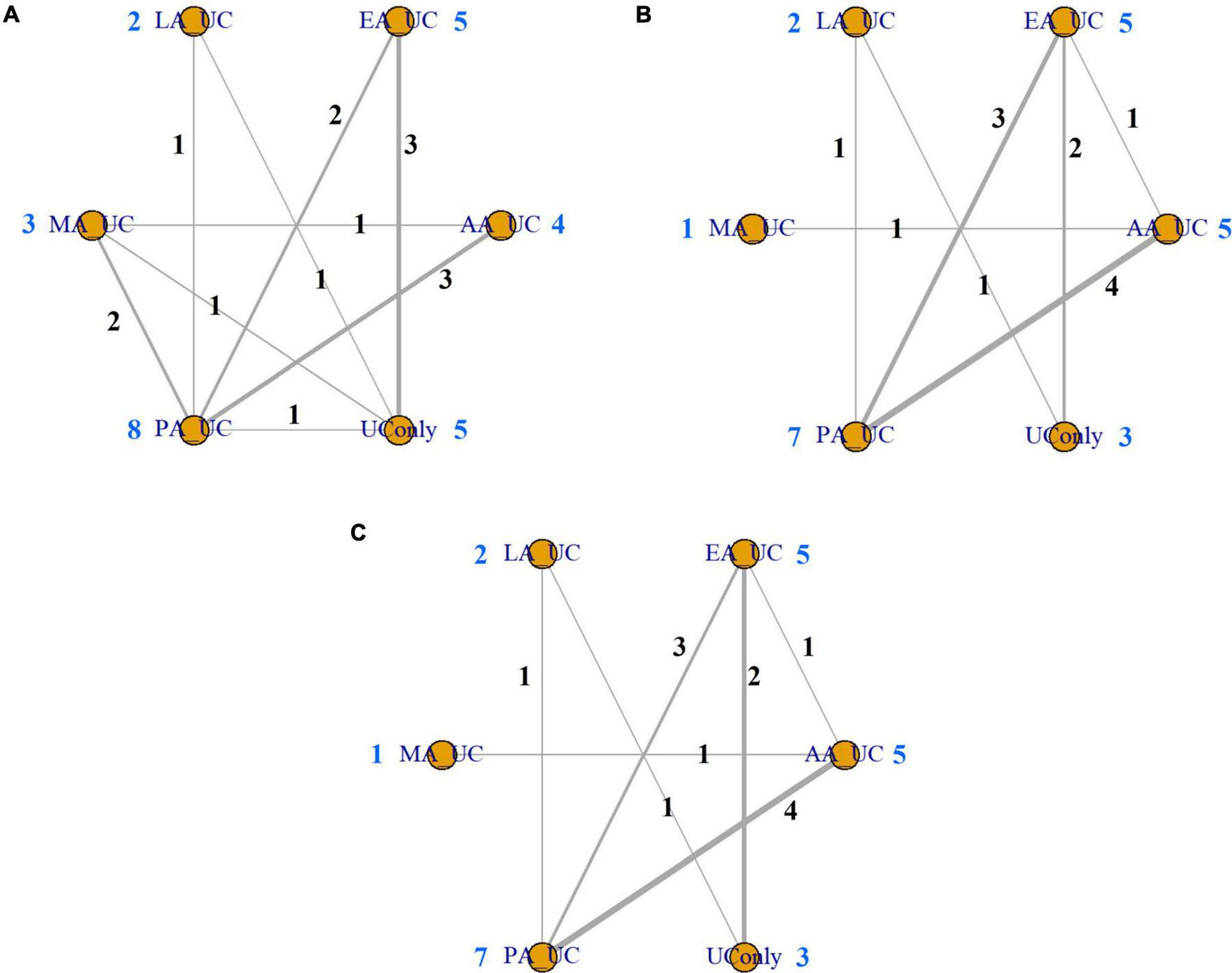 As discussed above, no studies have compared the effectiveness and safety of different acupuncture modalities for the treatment of obesity when used in combination with UC. For clinicians who have decided to use acupuncture in the treatment of obesity, the lack of evidence poses challenges in terms of the prioritization of treatment based on a given outcome variable. Network meta-analysis is a relatively new research methodology that extends the concept of meta-analysis and allows the ranking of treatment effect sizes through direct and indirect comparisons of multiple treatments (28). This study aimed to compare the effectiveness and safety of various acupuncture treatments for obesity in combination with UC. A network meta-analysis was conducted to provide a basis for selecting the most appropriate acupuncture modality for clinical practice.