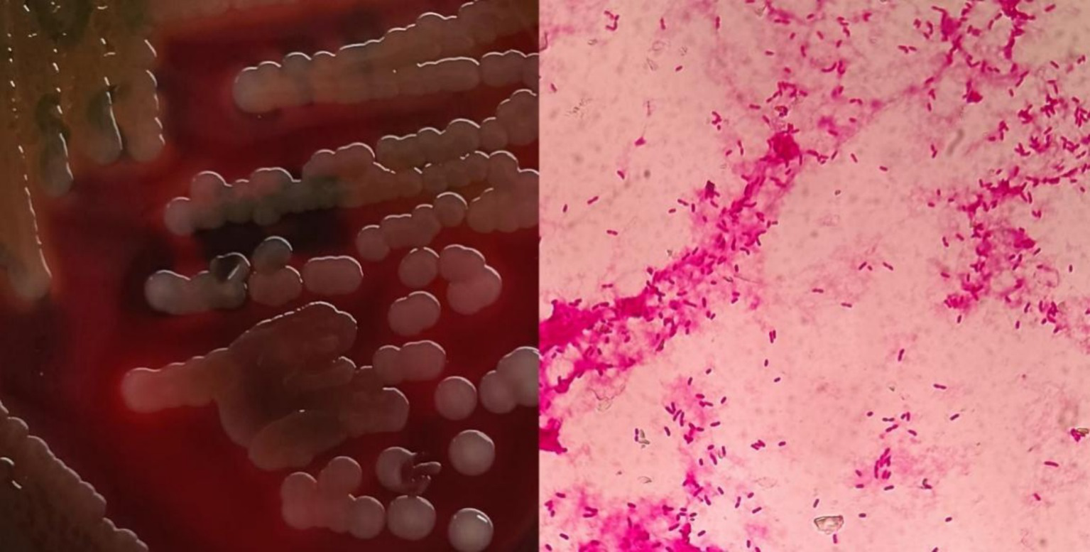 Blood samples from a patient with a choledochoduodenal fistula were collected for strain identification. The strain was subjected to gram staining and examined under a microscope. Subsequently, the strain was transferred to a blood plate and incubated for 16 h. Individual colonies were isolated for serological and biochemical identification.