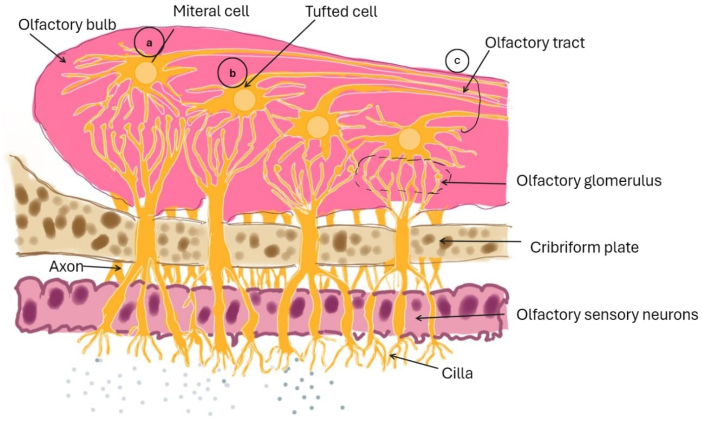 Figure 2. Diagram illustrating the medication transport route from the N2B via intracellular olfactory pathway.