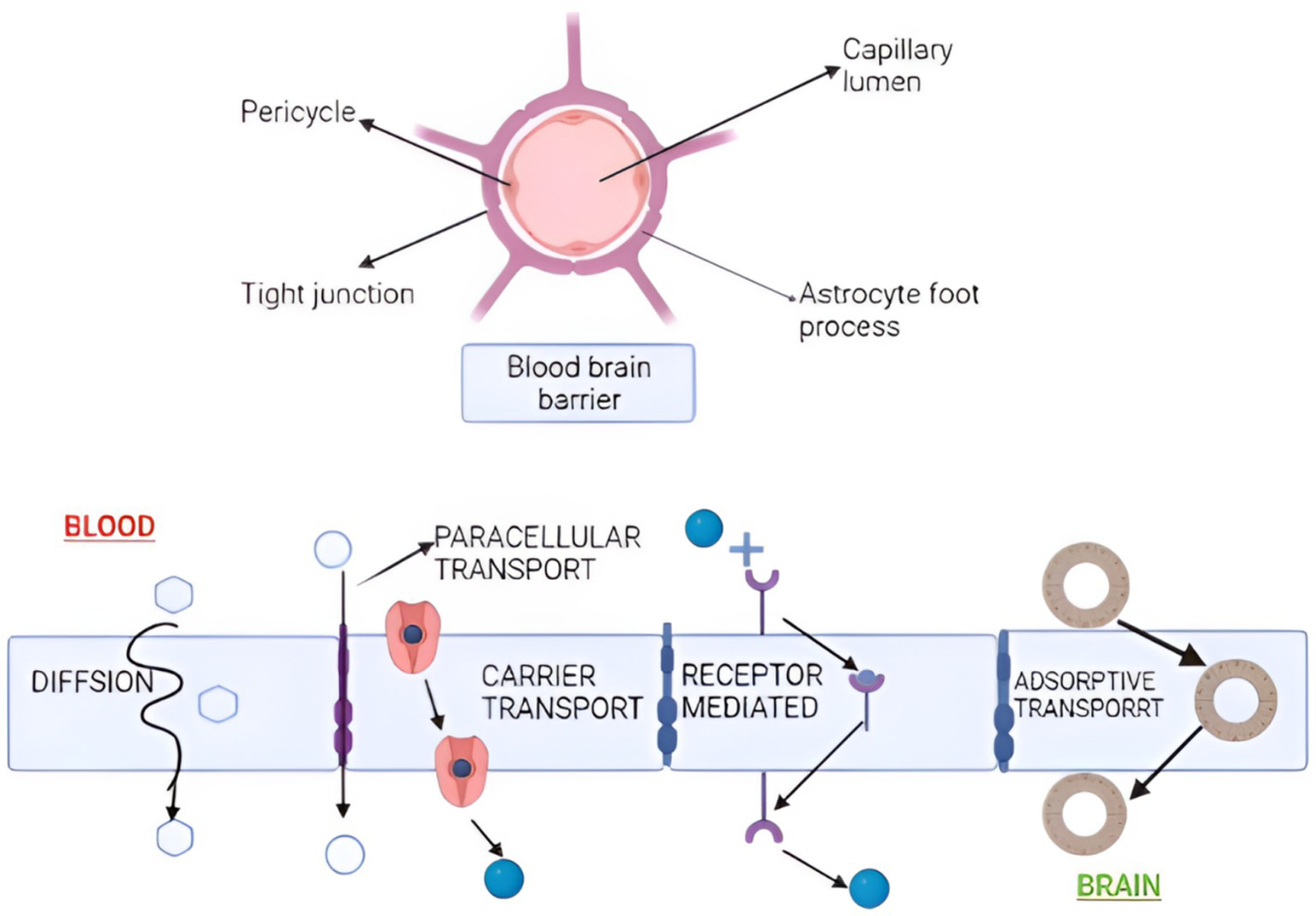 The BBB acts as a fundamental safeguard against the distribution of drugs in the CNS, hindering the influx of numerous therapeutic elements, including antibiotics and neuropeptides, into brain matter. This barrier serves an essential role in safeguarding the brain from deleterious substances, yet it complicates the therapeutic management of neuropsychiatric disorders (53, 54). Conventional pharmacological agents frequently fail to achieve therapeutic concentrations within the brain due to the restrictive nature of the BBB, thereby necessitating elevated dosages that may precipitate systemic side effects and diminish patient adherence (55, 56).