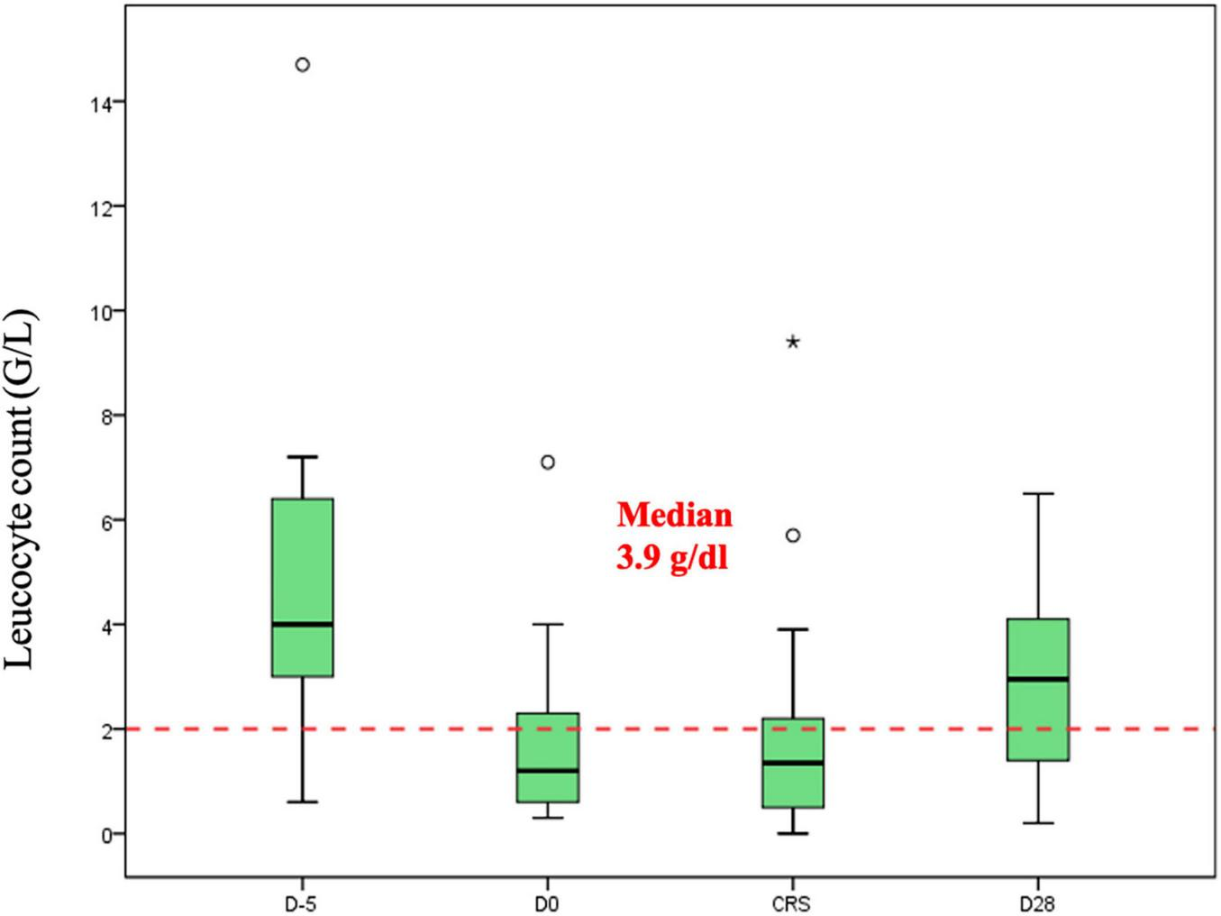 Leucocyte counts (G/L) during CAR-T.