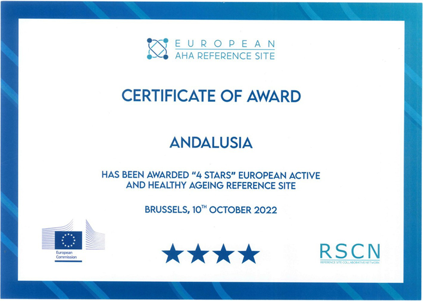 Andalusia was once again recognized as an RS with the highest rating of four stars in the fourth call of 2022, reflected in the Certificate of Award in Figure 2.