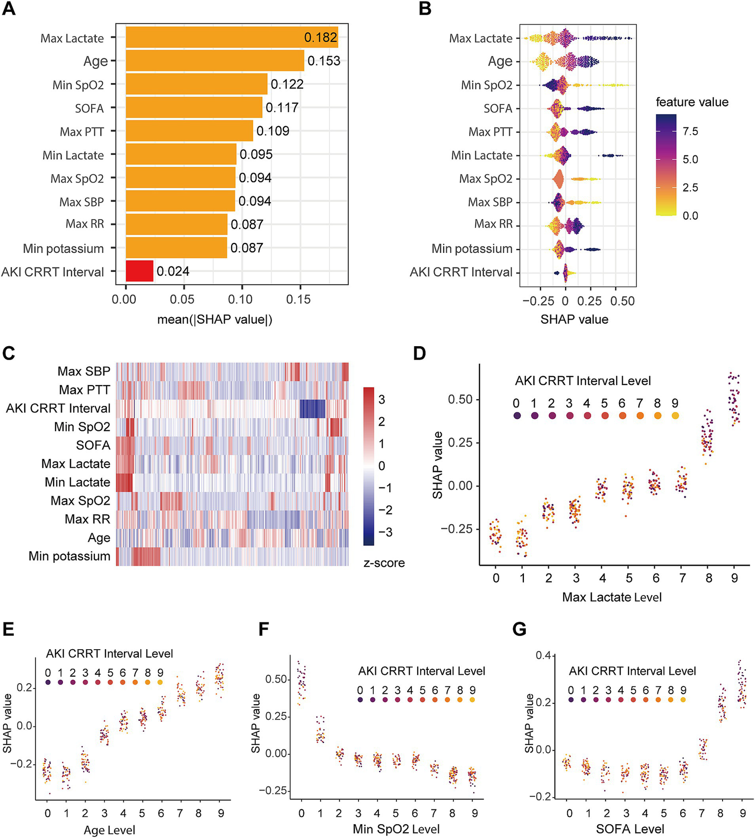 Beyond the timing of CRRT initiation, many other factors also influence the prognosis of patients with S-AKI. These include patient characteristics, illness severity, and various clinical and laboratory parameters (19, 20). Given the complex interplay between these factors, there is a growing demand for prognostic models to guide personalized treatment.