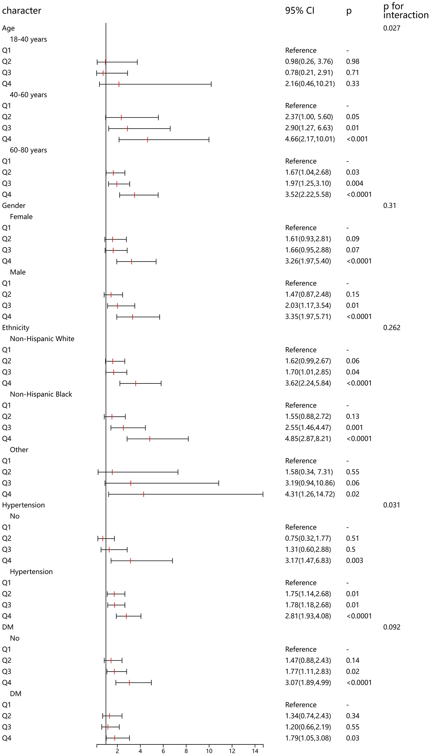 | Q1 | Reference | - | Reference | - | Reference | - |