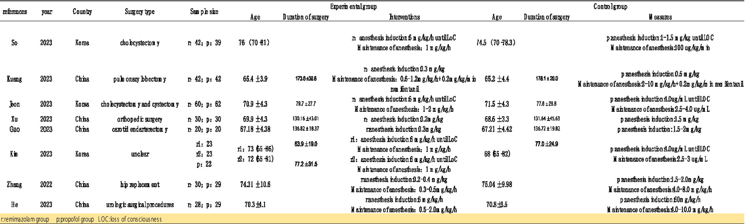 The inclusion criteria for this study are as follows: (1) elderly patients aged over 65 years who require general anesthesia with endotracheal intubation for surgical procedures; (2) the experimental group receives general anesthesia with remimazolam; (3) the control group receives general anesthesia with propofol. Other sedatives and analgesics may be used intraoperatively in both groups. (4) The primary or secondary outcomes must include the incidence of hypotension, MAP before and after induction, heart rate before and after induction, or the incidence of bradycardia; (5) the included studies must be randomized controlled trials (RCTs). Exclusion criteria: (1) studies for which data could not be extracted for analysis; (2) studies that have been published more than once; and (3) studies in which the control group is not treated with propofol.