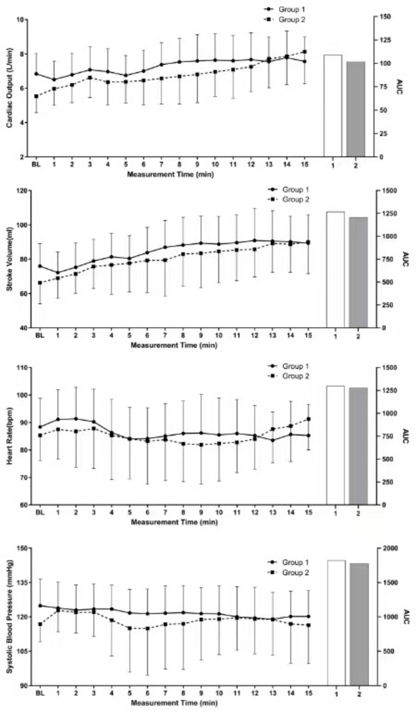 The Kolmogorov—Smirnov test was used to determine whether the continuous variables fit a normal distribution, and the independent sample t-test was used to compare the groups that fit a normal distribution. The Mann—Whitney U test was used for comparisons between groups that did not conform to a normal distribution. The χ2 test was used to compare the categorical variables. One-way repeated-measures ANOVA was conducted for CO, SV, systolic blood pressure, and heart rate. Data were analyzed using IBM SPSS Statistics (version 22.0; IBM Corp., Armonk, NY, USA). Statistical significance was set at P < 0.05.