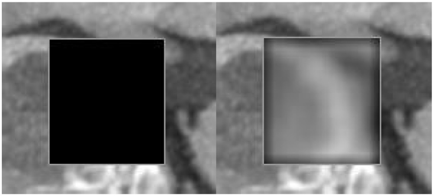 In the training dataset, CT images from 60 patients were incorporated, each having isotropic 0.47 mm resolution. The observed calcification volume was generally modest, with most instances comprising approximately 100 voxels. Smaller patches measuring 24x24x24 were extracted from the original images to enhance the training process. This area was sampled at a frequency of 8x8x3 in each dimension, with a 50% overlapping rate, because the calcified segments were mostly located in the middle region of 120x120x48 in each picture. A total of 18,000 patches were produced by all individuals using this approach. These patches were inverted in all three dimensions for data augmentation. The inpainting procedure involved defining a 12-by-12- by-12-inch cubic box as the mask in the middle of each patch. The procedure of restoring the image was made easier and less complicated. Bones and calcification were the most prominent features in computed tomography angiography (CTA) pictures. Nevertheless, no bones were found in the core region according to the criteria. Using this data, calcification zones might be located with a 700 Hounsfield Unit (HU) cutoff. The inclusion of areas devoid of calcification in the training process is remarkable. The neural network learned and successfully reconstructed non-calcified portions thanks to this addition. Figure 2 shows the input image. While the model was being tested, patches containing calcium were given to her, with the mask covering the calcium. Our method guaranteed a calcium-free output picture that was consistent with the intended restoration result.