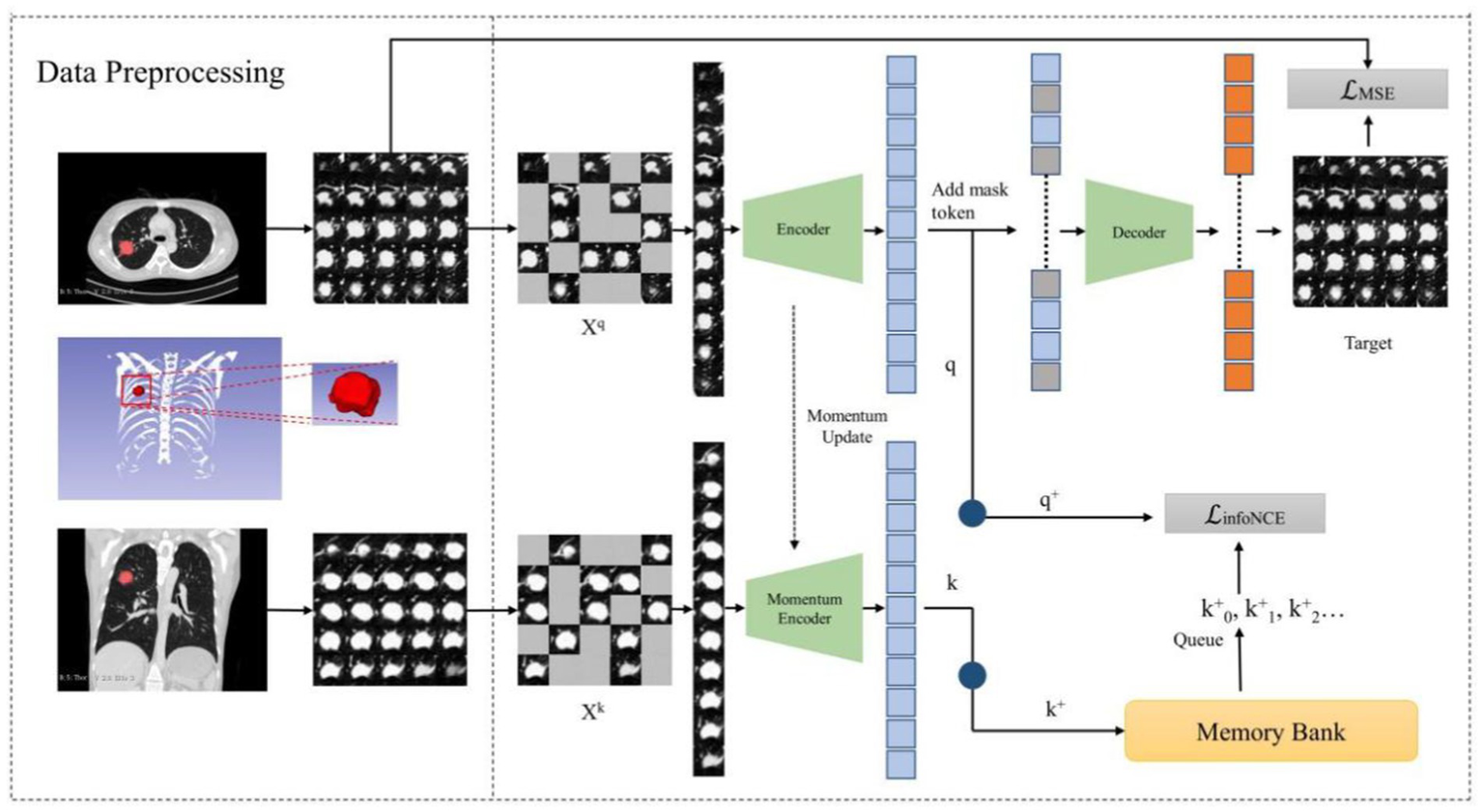 lung cancer, pulmonary granulomatous nodule, solid lung adenocarcinomas, CT image, self-supervised learning, masked autoencoder, momentum contrast