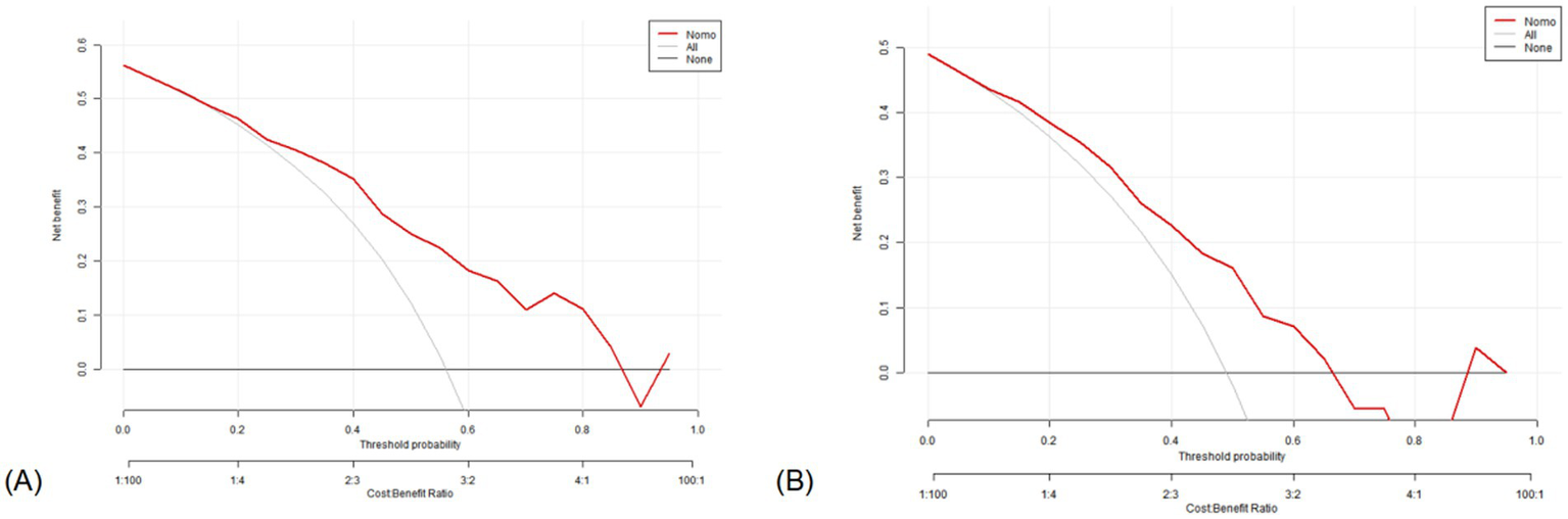 Then, we assessed the generalization of the models by evaluating their predictive performance using the ROC curve, accuracy, sensitivity, specificity, and F1 score. The nomogram’s goodness of fit was assessed through the Hosmer–Lemeshow test and calibration curves. The clinical applicability was also assessed via decision curve analysis (DCA), which quantified net benefits at various threshold probabilities. The overall flowchart of the study is shown in Figure 2.