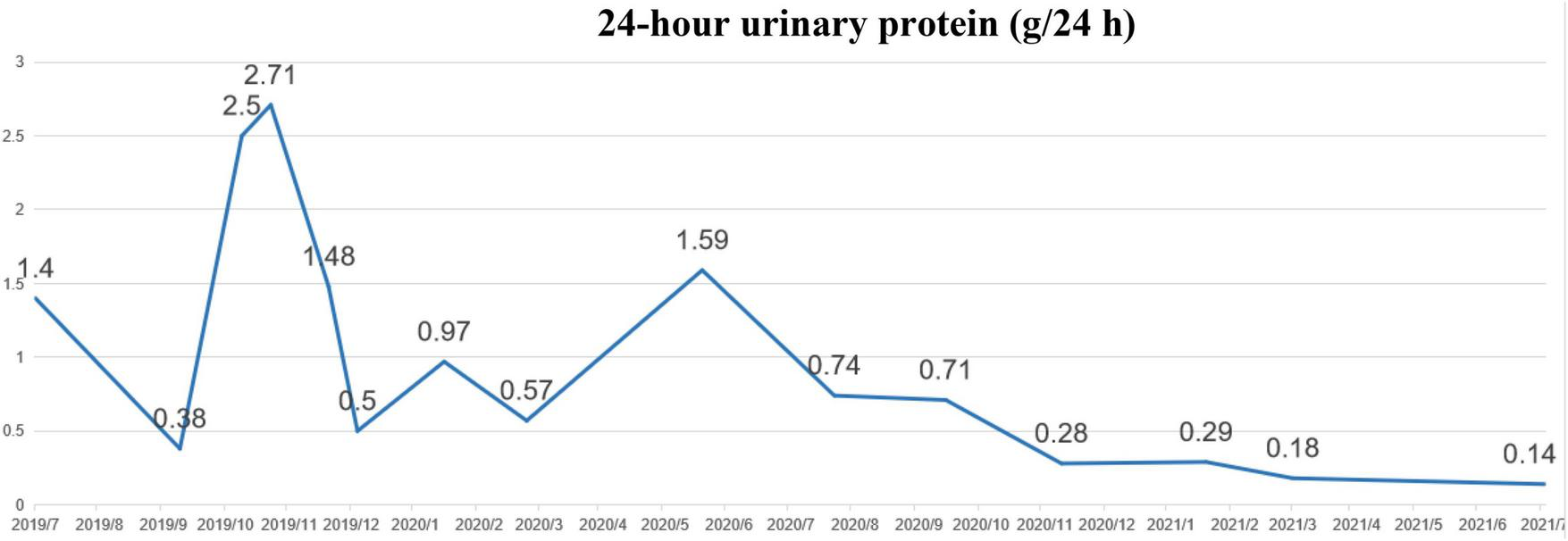 Changes in 24 h urinary protein between July 2019 and July 2021 in case 2.