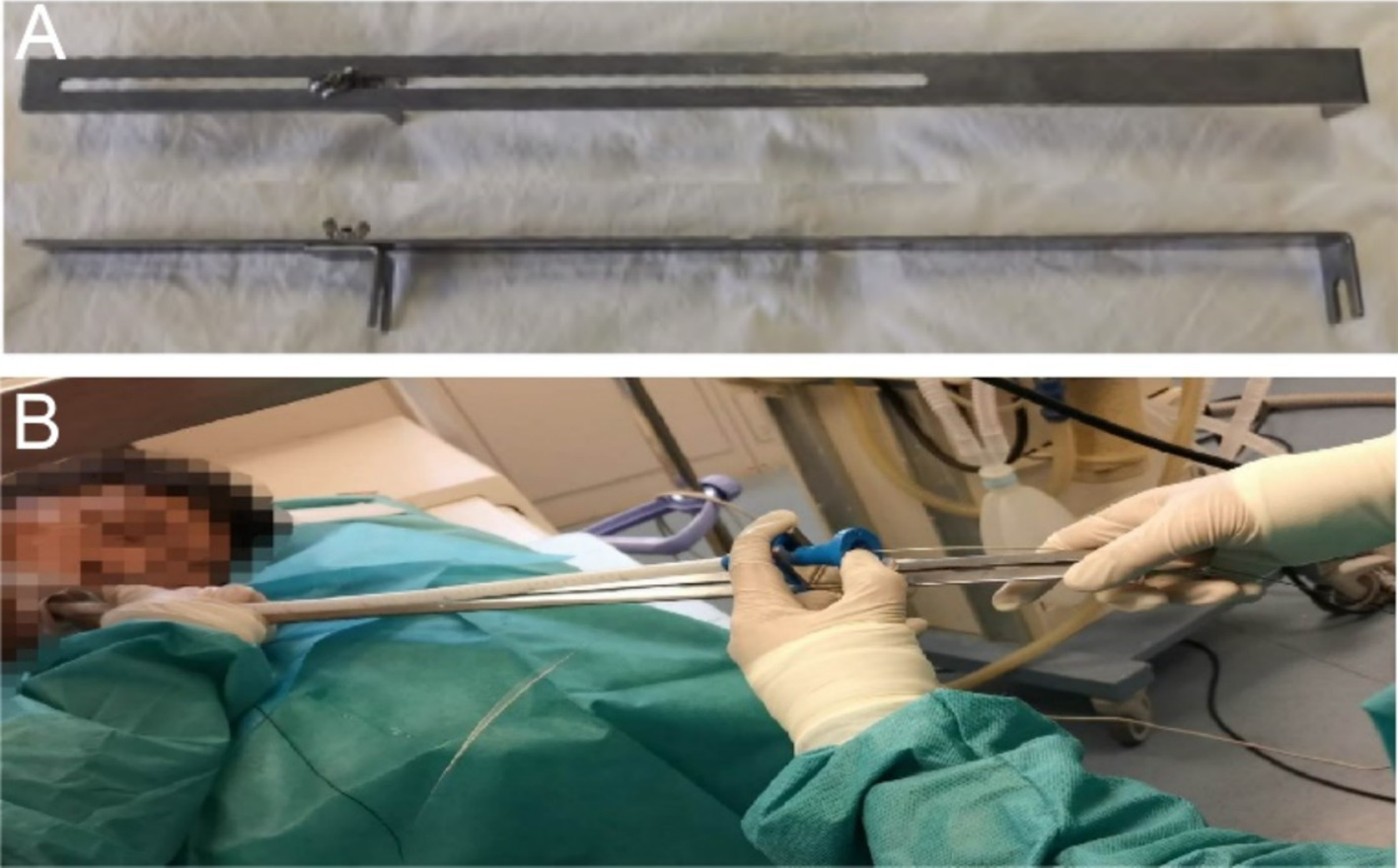 The Sigma stent can achieve precise stent deployment using an external localization ruler (Figures 5A,B). In contrast, the placement of traditional stents often relies on X-ray guidance combined with endoscopic manipulation, especially when placing super-high stents, where precision is crucial. Given this, our center uses an external localization ruler tool that enables millimeter-level precise positioning of stent placement in an environment without X-ray radiation, greatly improving the success rate and safety of the surgery. In this case, the upper end of the stent needed to be precisely positioned at a height of approximately 18.5 centimeters from the incisors. The use of the external localization ruler made this technology more convenient and safe.