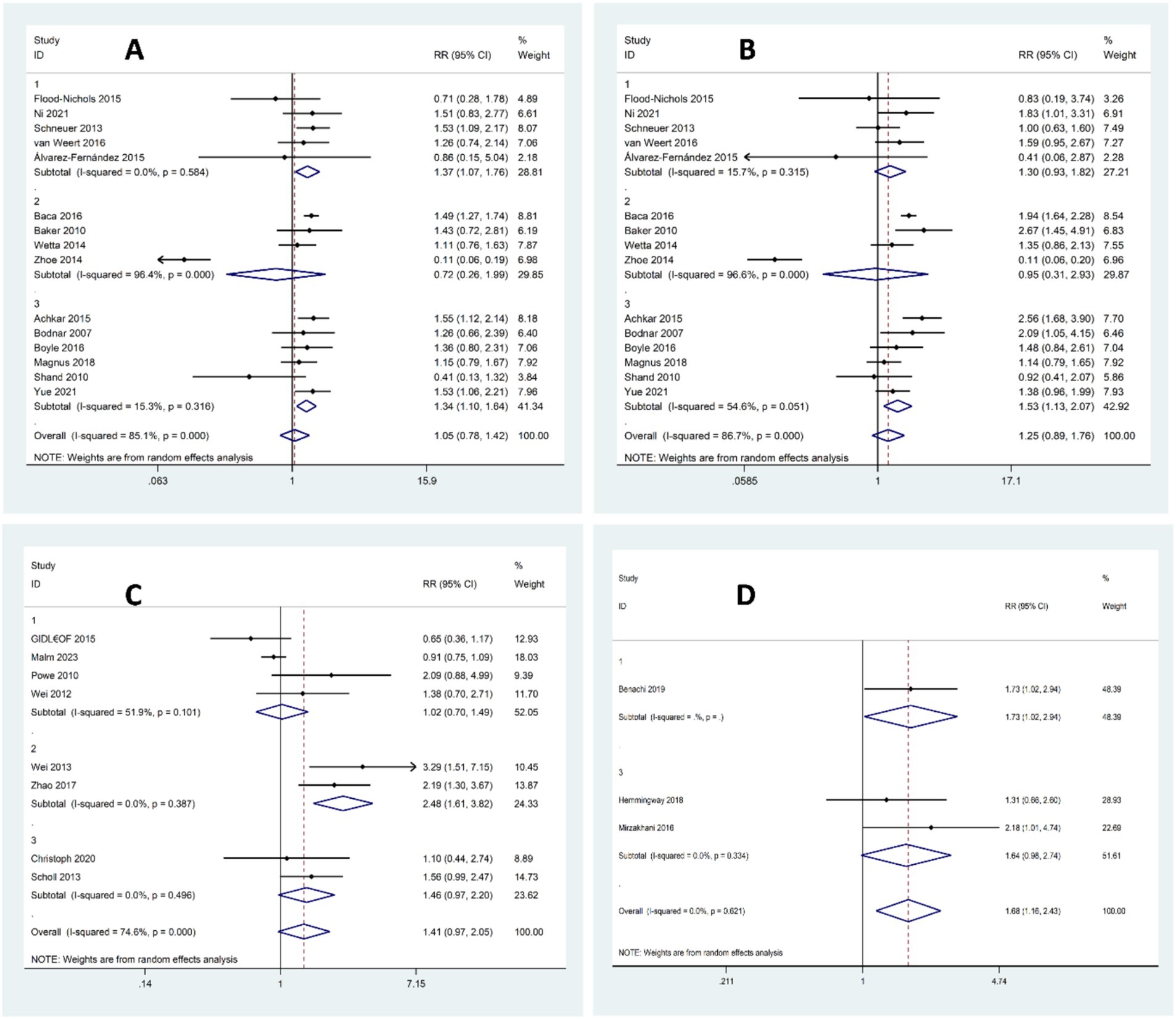 Sensitivity analysis indicated that the removal of any individual study or subgroup of studies had minimal impact on the pooled risk ratio and its confidence interval (Supplementary Figures S1, S2), suggesting the robustness of our findings.