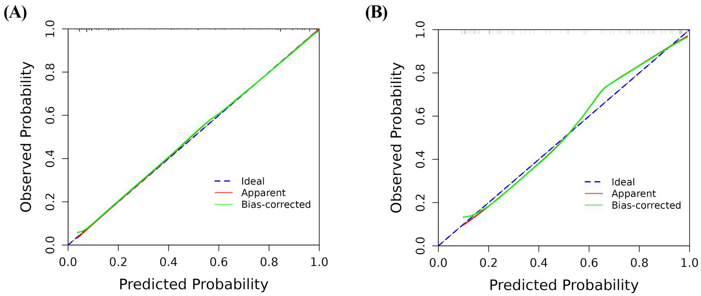 Statistical analyses were performed using SPSS 26.0 software (SPSS, INC; Chicago, United States), and nomogram establishment was undertaken by R 3.5.1 programming language.1 Categorical variables were presented as numbers with percentages and analyzed with an x2 test or Fisher’s exact test, whereas continuous variables were expressed as mean ± standard deviation or median (interquartile range) and analyzed using Student’s t-test or Mann–Whitney U test. Logistic regression analyses were used to determine the influence of risk factors on outcomes in patients with HICH. Variables with p < 0.05 in univariate analysis were included in multivariate logistic regression. Since SII, NLR, and SIRI share common component factors, there may be bias when they were included together in multivariate logistic regression analysis. Therefore, only SIRI was included in multivariate logistic regression analysis in the study. The nomogram was constructed based on multivariable logistic regression results. The performance of the nomogram was assessed by discrimination and calibration. The discriminative ability of the nomogram was evaluated by the area under the receiver operating characteristic curve (AUC), which ranged from 0.5 (no discrimination) to 1 (perfect discrimination) (29). The calibration was evaluated using calibration curves and Hosmer-Lemeshow tests (30). Both discrimination and calibration were evaluated using bootstrapping methods with 1,000 resamples. Furthermore, decision curve analysis (DCA) was used to evaluate the net benefit of the model for patients (31). Two-sided p-values <0.05 was considered significant.