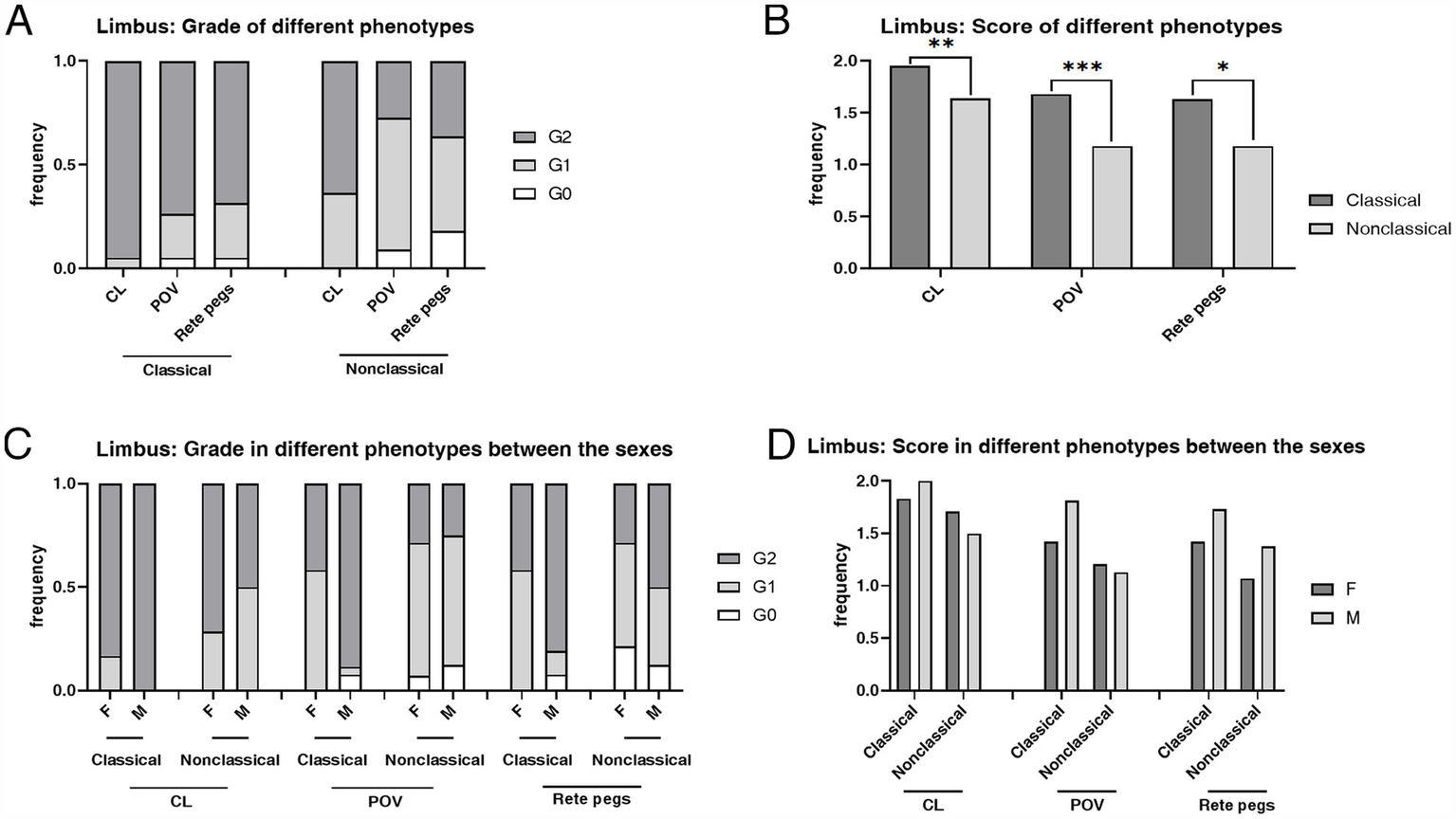 | Classical phenotype (38 eyes) | 2.47 ± 1.29 | 6 (15.79%) | 1 (2.63%) | 7 (18.42%) | 17 (44.74%) | 7 (18.42%) |