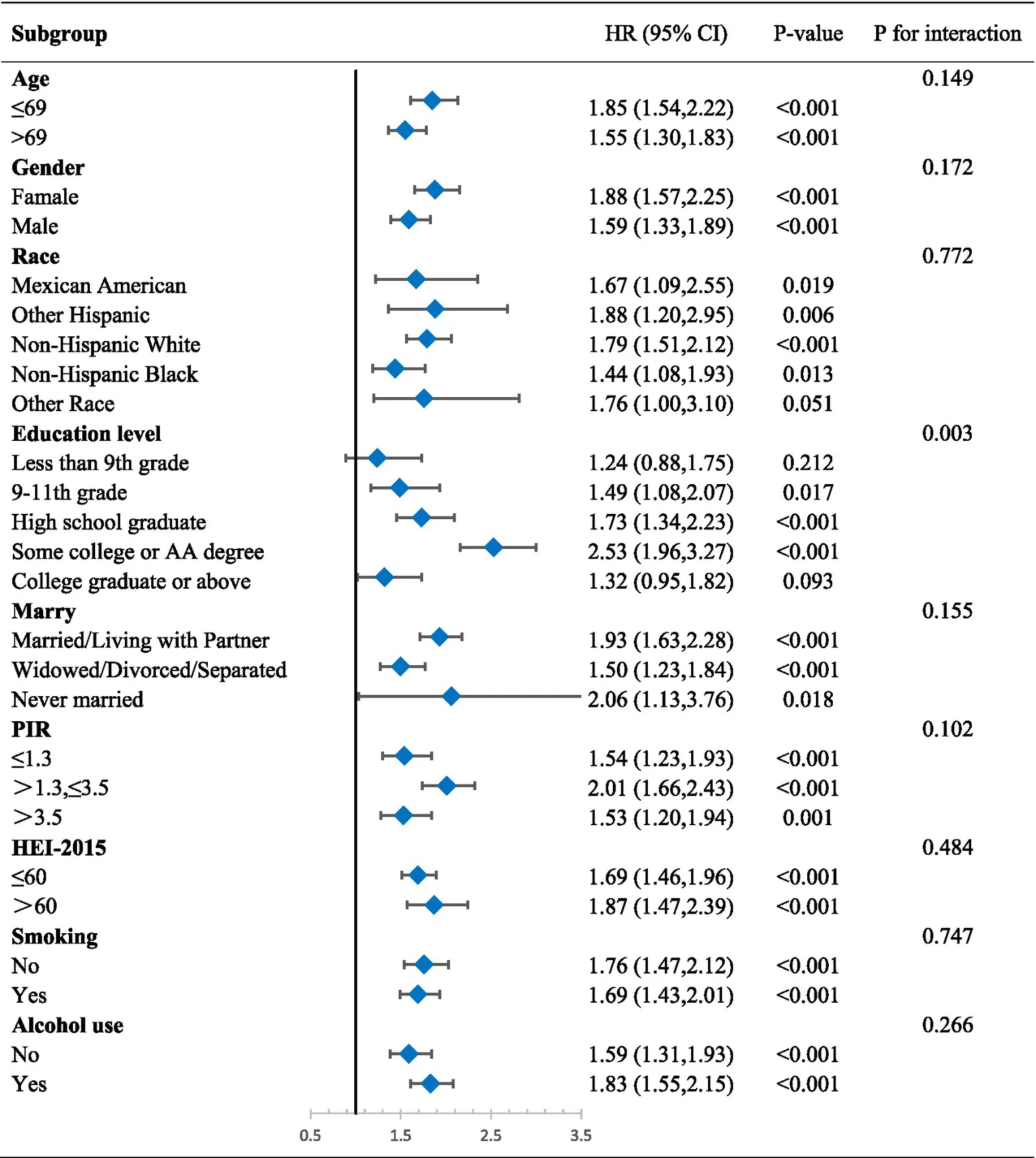 | Quartile 4 (0.88 < VAI ≤ 2.45) | 2.32 (1.74, 3.09) | 2.10 (1.59, 2.79) | 1.92 (1.41, 2.61) |