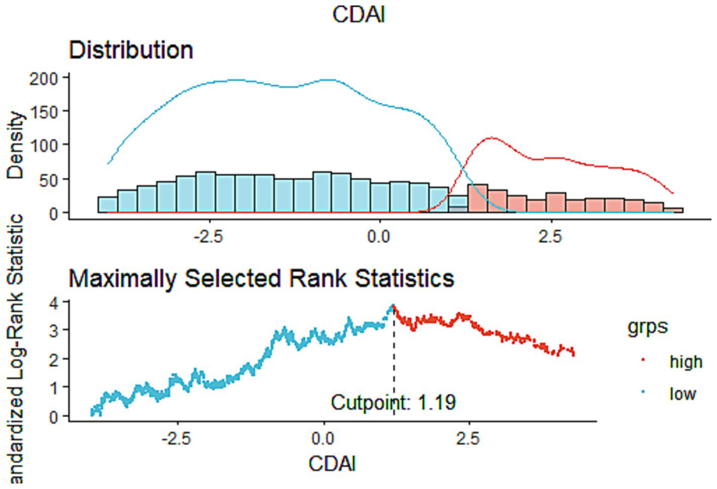 The cutoff point was calculated using the maximally selected rank statistics based on the “maxstat” package.