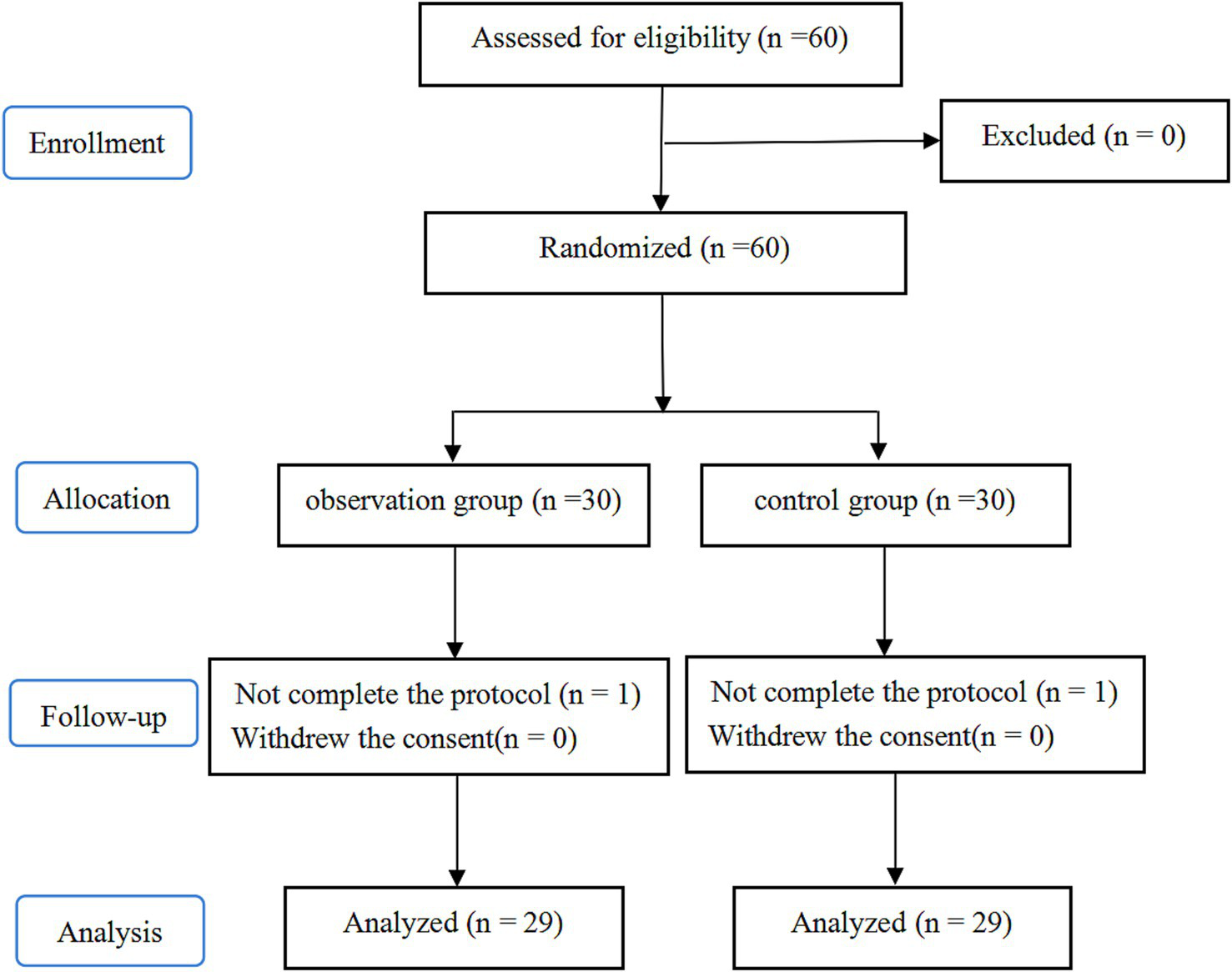 This study involved 60 patients. Among them, one patient in the P group was lost to follow-up, and one patient in the T group had an intraoperative pathological indication of an infiltrating tumor and underwent lobectomy and lymph node dissection instead. Consequently, 58 participants were included in the final analysis. Figure 3 shows the CONSORT flow diagram. The two groups showed no significant differences in baseline and intraoperative data (p > 0.05, Table 1).