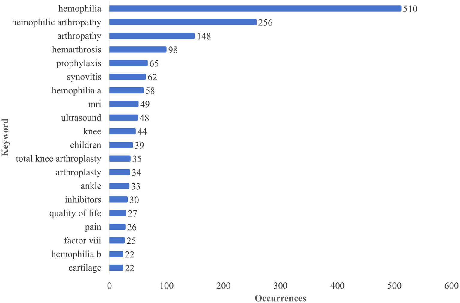 Wei Z, Ou L, Chai S, Zhang D and Tang G (2025) Global trends in hemophilic arthropathy research: a bibliometric and visualization analysis. Front. Med. 12:1556906. doi: 10.3389/fmed.2025.1556906