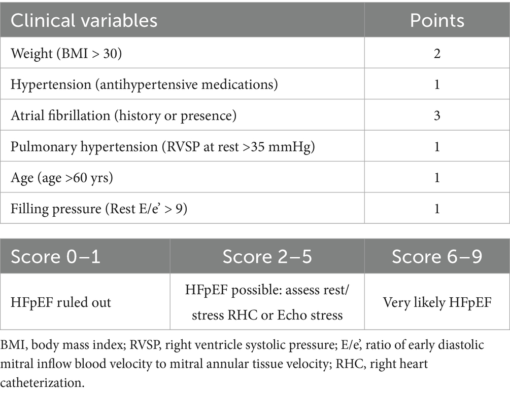 Table 3. H2FPEF score to evaluate the possible presence of HFpEF in patients with symptomatic dyspnea.