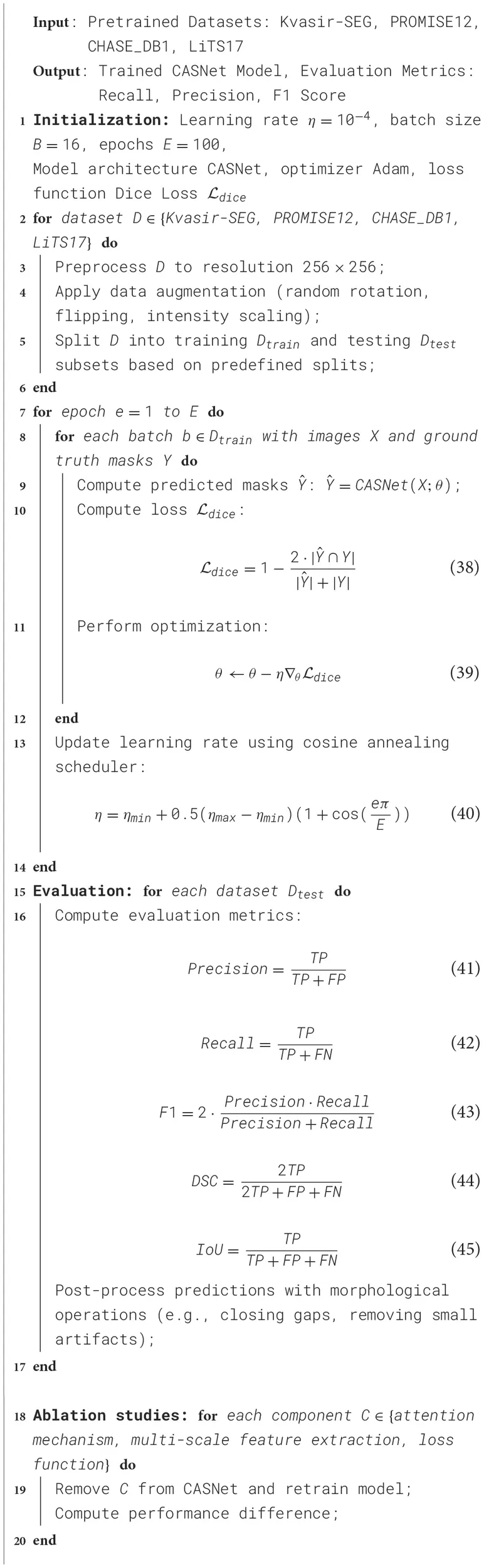Medical image segmentation involves partitioning an input image I into distinct regions, R1, R2, …, Rk, where each Ri corresponds to a specific anatomical structure, tissue type, or pathological region. Formally, this can be expressed as:
