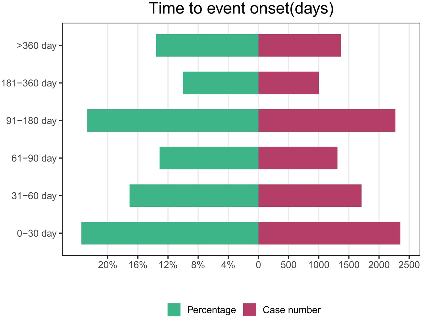 Of the 46,526 AE reports related to ISO, 10,012 contained complete and accurate time-to-onset information. The median time to AE onset was 81 days, with an interquartile range of 31 to 169 days. Approximately 23.5% of AEs (N = 2,354) occurred within the first month of ISO treatment. Interestingly, the incidence of AEs during months 4 to 6 (N = 2,272, 22.7%) was comparable to the first month. In contrast, the likelihood of AEs was lowest during months 7 to 12. This pattern suggests that close monitoring is particularly important during the early and mid-treatment phases. The higher AE incidence in these periods may reflect the body’s initial response or dosage adjustments. These findings emphasize the need for more frequent follow-up visits in the first 6 months to detect AEs early and enable timely intervention. Figure 3 illustrates the time-to-onset distribution for ISO-related AEs.