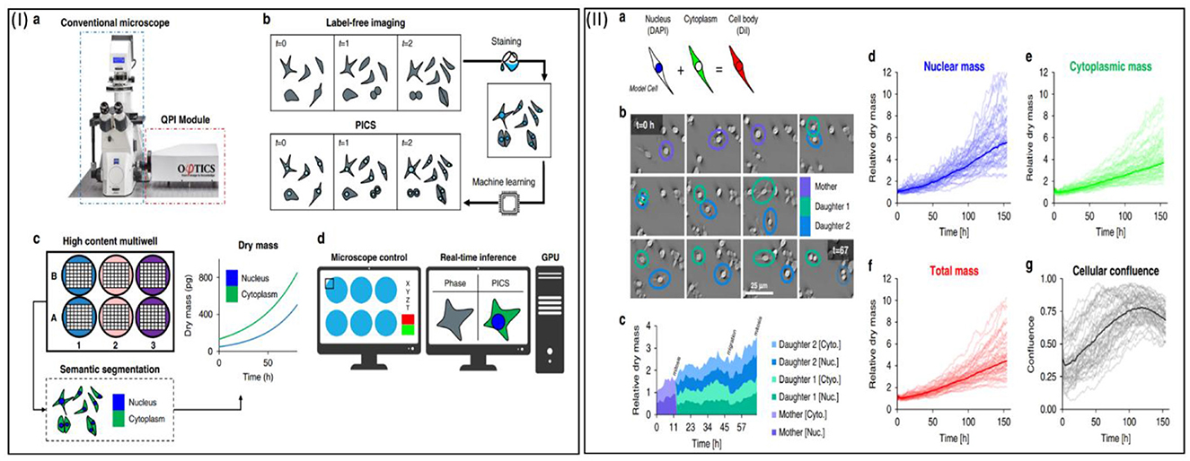 Figure 2. (I) The PICS method enables label-free measurement of cellular dry mass in specific compartments. (II) PICS allows monitoring of variations in the dry mass of cellular compartments. This figure is modified and reprinted from reference (71).
