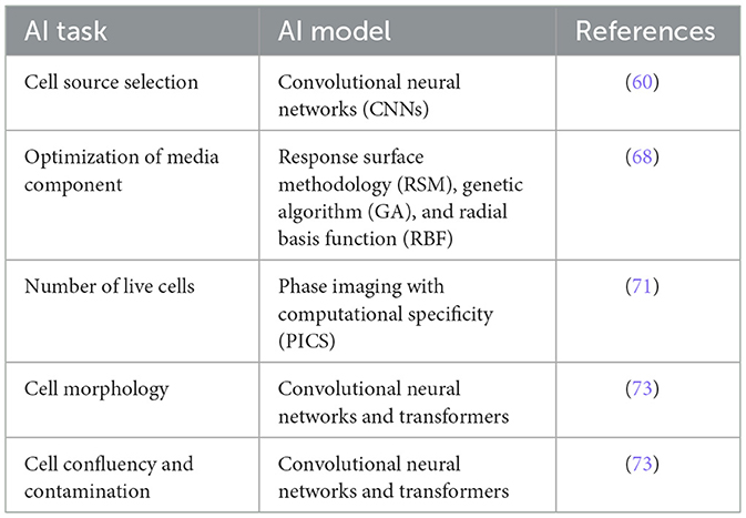 70. Ahmed SA, Saikia A, Devi SG, Borah JC. AI-assisted cell culture system, in artificial intelligence (AI) in cell and genetic engineering. Methods Mol. Biol. (2025) 2952:149–67. doi: 10.1007/978-1-0716-4690-8_9