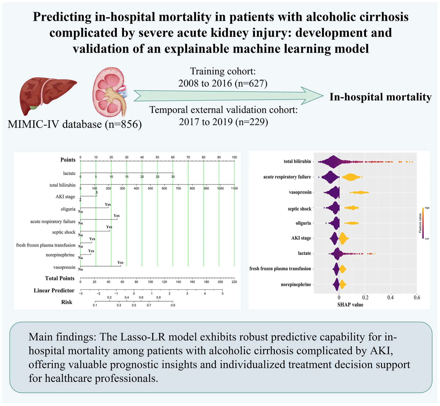 Sun M, Liu S, Min J, Zhong L, Zhang J and Du Z (2025) Predicting in-hospital mortality in patients with alcoholic cirrhosis complicated by severe acute kidney injury: development and validation of an explainable machine learning model. Front. Med. 12:1570928. doi: 10.3389/fmed.2025.1570928