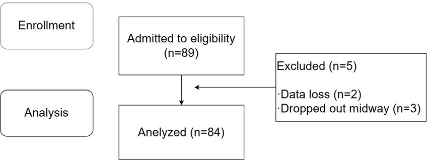 A total of 89 patients were enrolled in this study, among whom 3 were excluded due to data loss during collection, and 2 dropped out midway. All participants provided informed consent after being fully informed about the details of the experiment. Ultimately, 84 patients completed the study, with 70 patients in the successful ultrasound-guided ISBPB group and 14 patients in the failed group. The specific experimental process is shown in Figure 2.