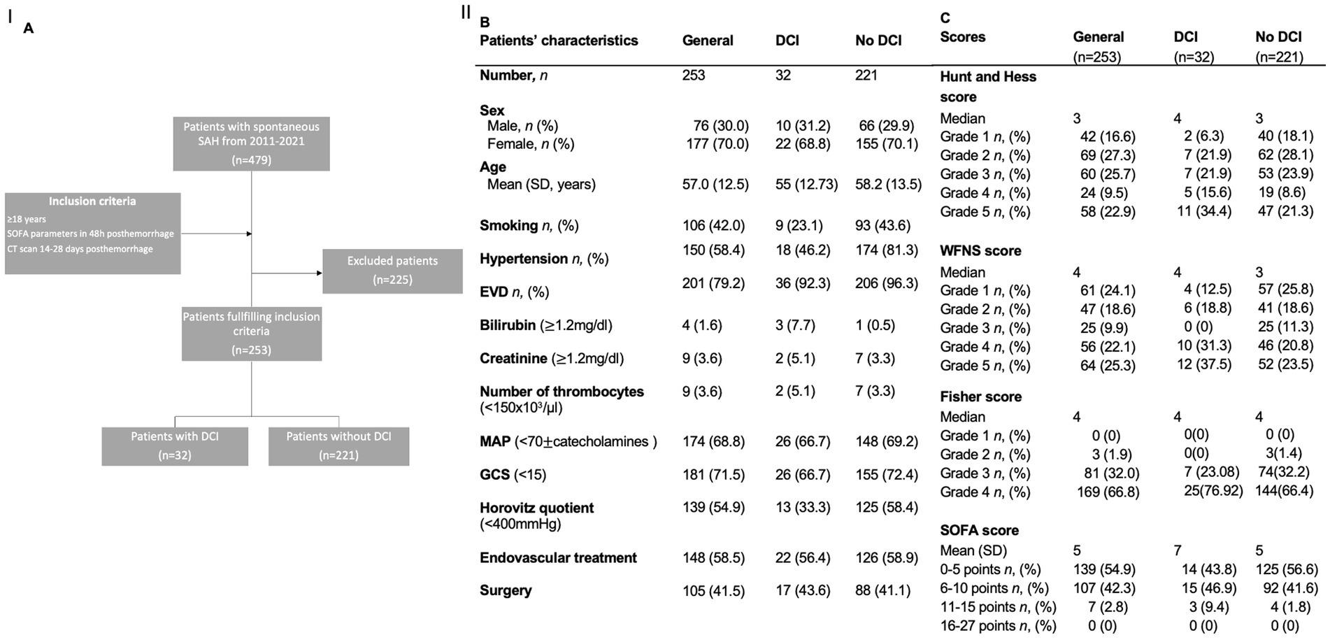 Keywords: subarachnoid hemorrhage, SAH, delayed cerebral ischemia, DCI, Sequential Organ Failure Assessment score, SOFA score, clinical