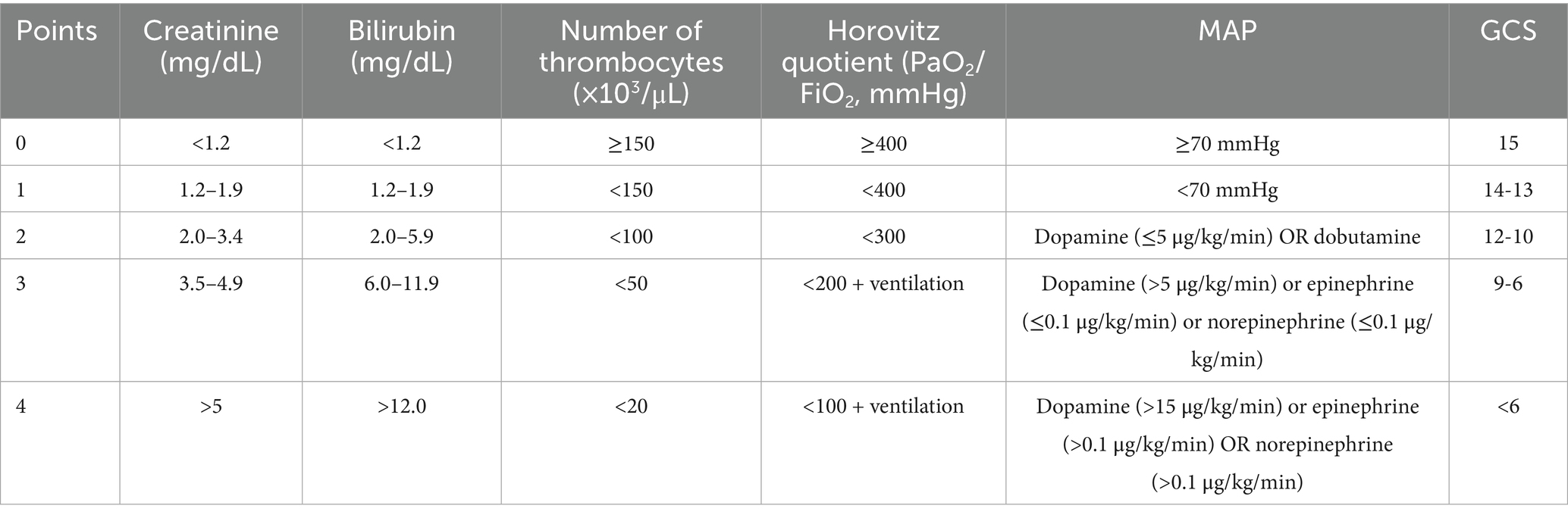 15. Vincent, JL, de Mendonça, A, Cantraine, F, Moreno, R, Takala, J, Suter, PM, et al. Use of the SOFA score to assess the incidence of organ dysfunction/failure in intensive care units: results of a multicenter, prospective study. Working group on “sepsis-related problems” of the European Society of Intensive Care Medicine. Crit Care Med. (1998) 26:1793–800. doi: 10.1097/00003246-199811000-00016