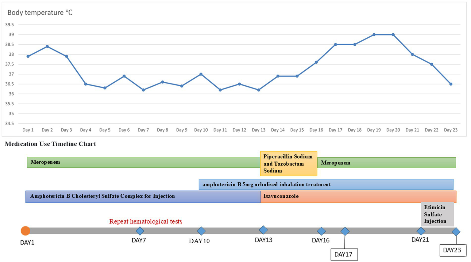 Temperature chart and medication chart for Case 1.