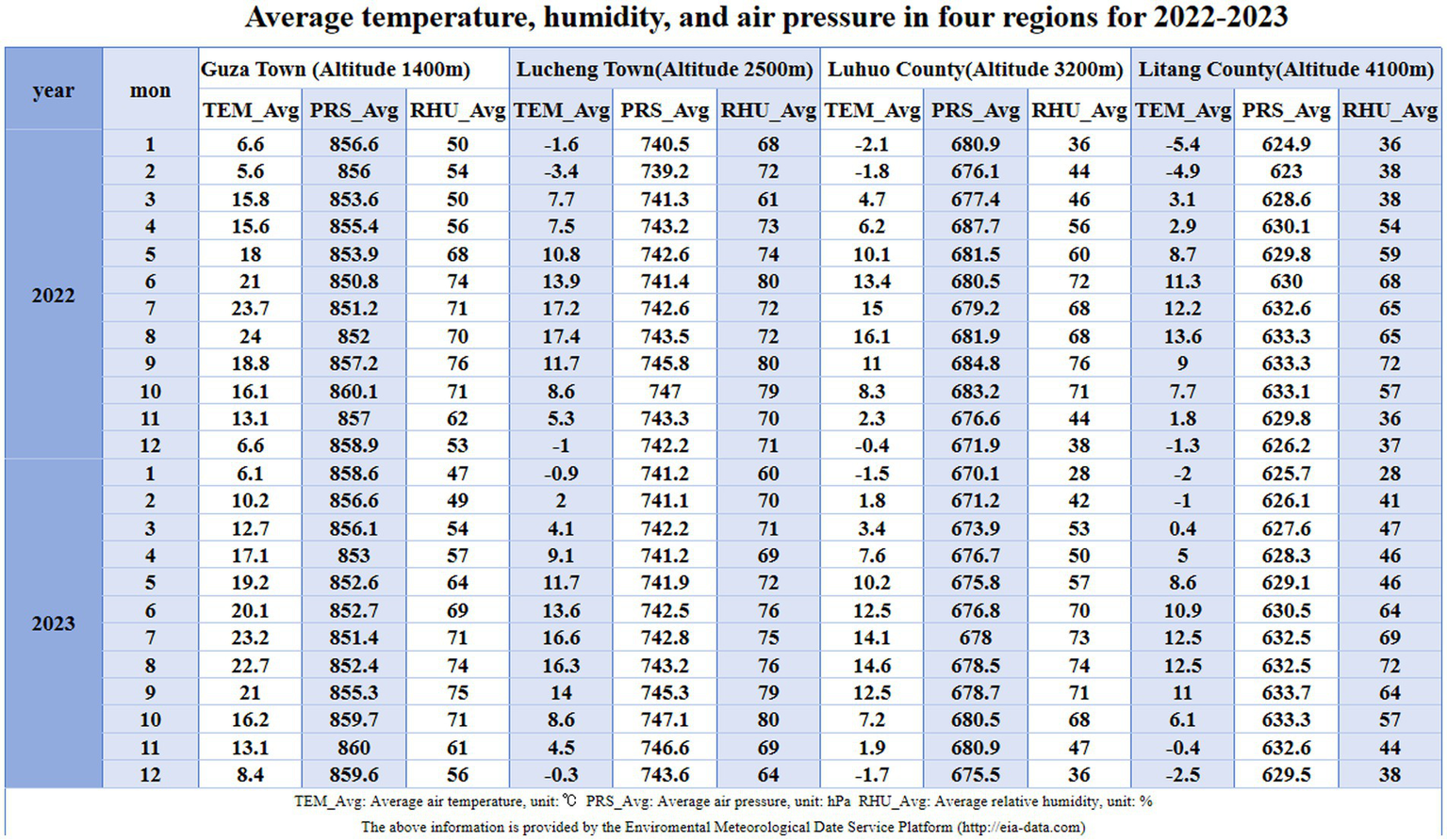| Luhuo County (n = 361) (altitude 3200m) | 6.66 ± 1.72 | 5.50 ± 0.50 | 48.74 ± 4.97 | 162.47 ± 16.56 | 287.43 ± 59.37 |