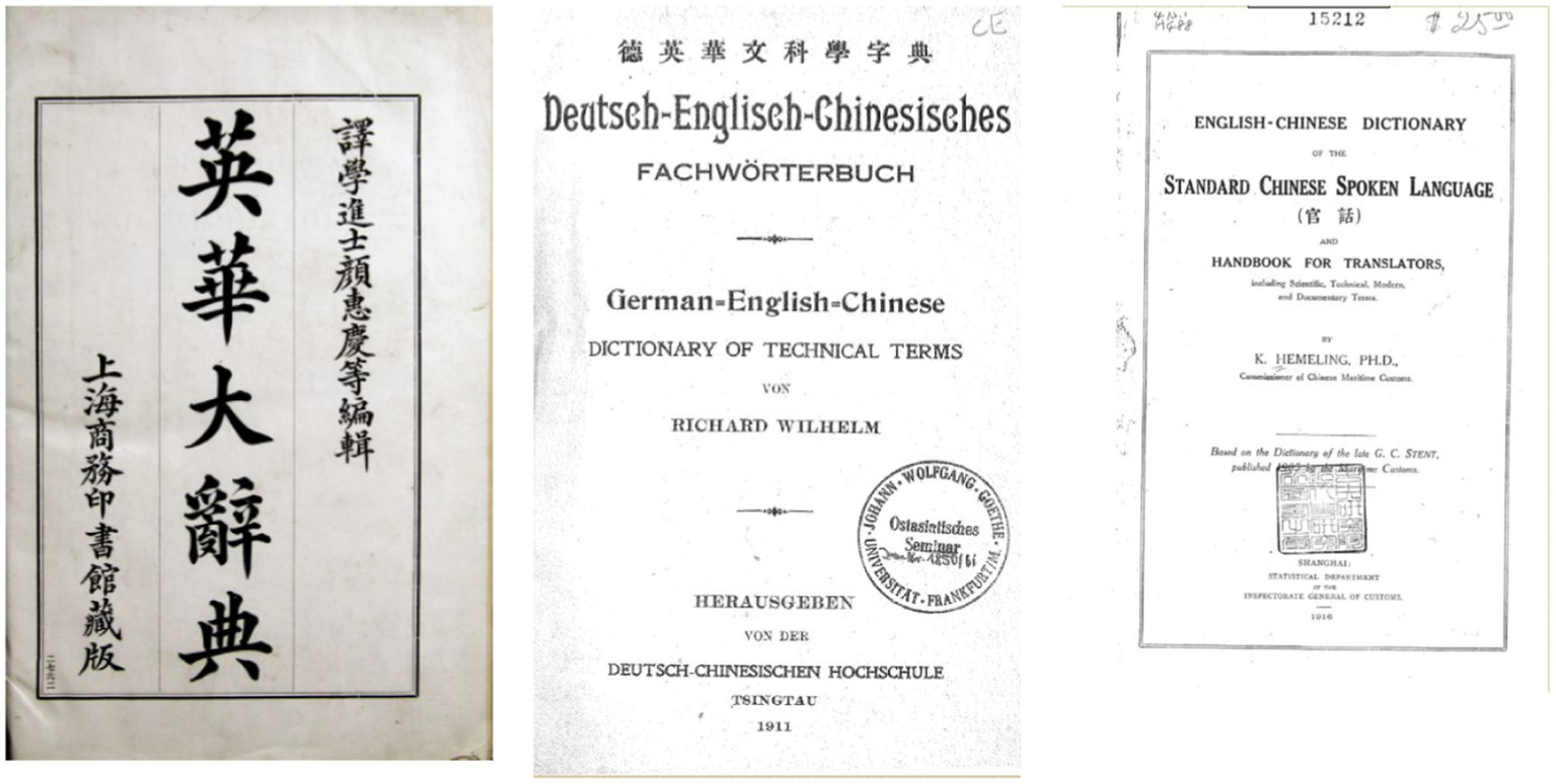 Yen’s (left), Wilhelm’s (middle), and Hemeling’s (right) dictionaries. Source: “The English-Chinese Dictionary Database” in “Modern History DataBases” (Institute of Modern History, Academia Sinica). Reproduced with permission from Institute of Modern History, Academia Sinica.
