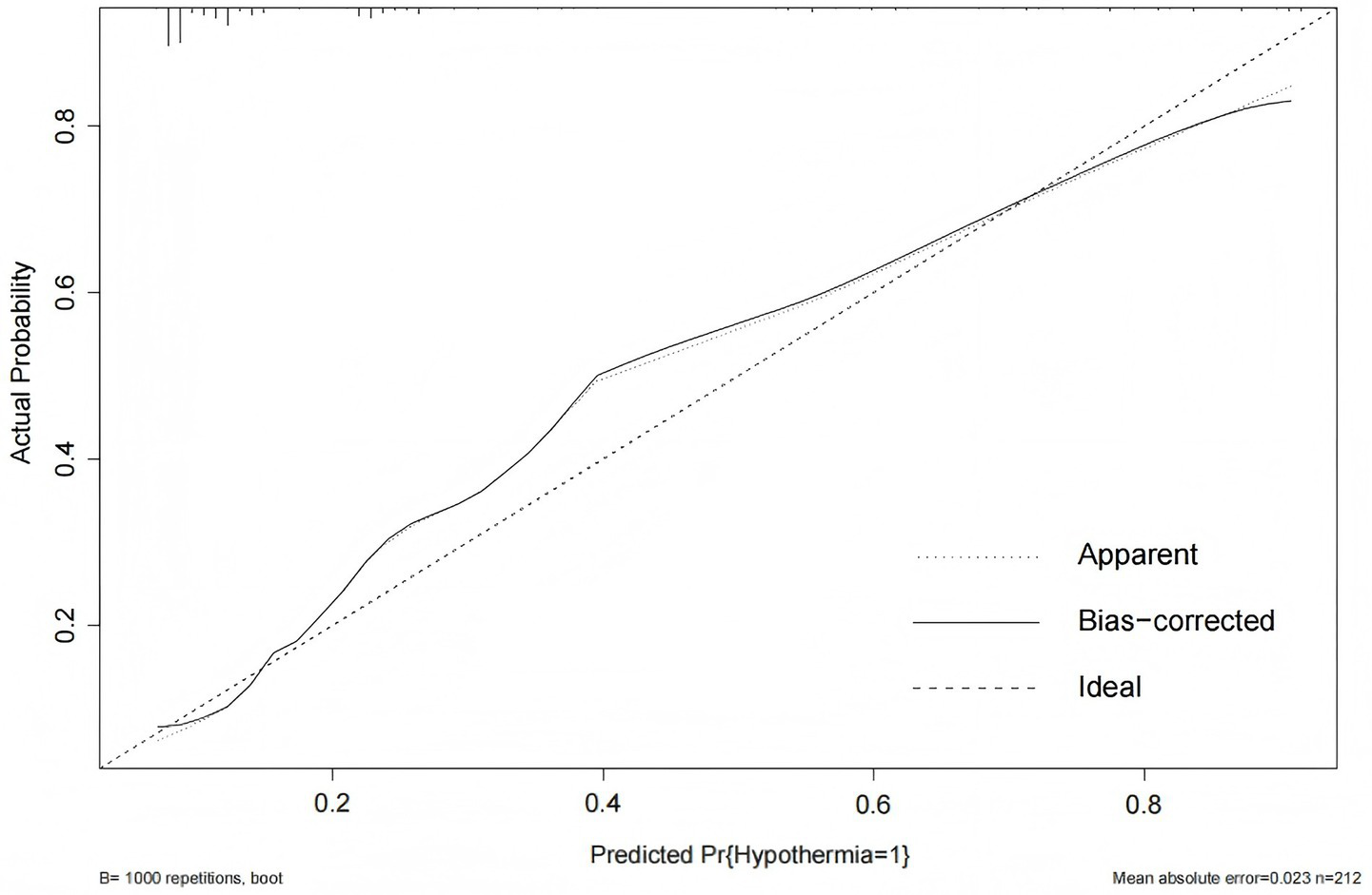 As a result, our goal is to construct a hypothermia risk prediction model for ICU patients that enables early and accurate risk estimation. Considering that the risk factors affecting hypothermia in ICU patients may be numerous and complex, the key to constructing an accurate model lies in effectively extracting important independent variables and avoiding overfitting. We believe that the Least Absolute Shrinkage and Selection Operator (LASSO) can address these issues. LASSO, a machine learning method proposed by Tibshirani in 1996, controls model complexity through its constraint mechanism (18). LASSO selects the most relevant features for the final prediction model, which enhances its potential to perform well when applied to future patients (19). Therefore, this study aims to develop a hypothermia prediction model using LASSO and validate its performance. The success of this research can support clinical decision-makers in identifying high-risk patients and facilitate early interventions through improved clinical management.