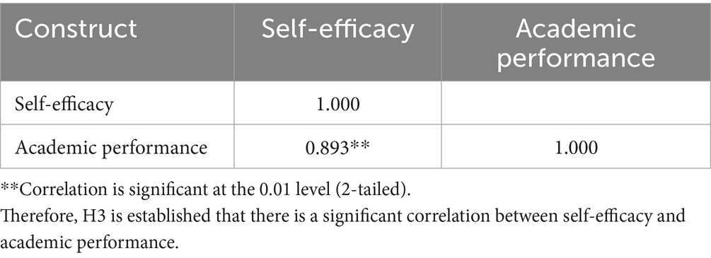 H3: There is a significant correlation between self-efficacy and academic performance.