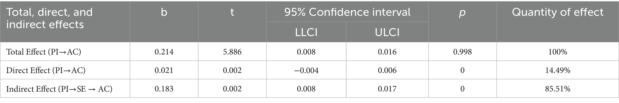 3.4 Mediating effect of self-efficacy
