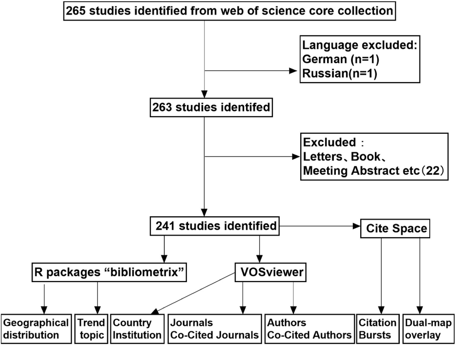 Bibliometrix R (version 4.0.0) is an online bibliometric analysis software accessed through RStudio (32). This R package is mainly utilized for quantitative analysis. With this software, our primary tasks involved generating publication networks across countries, topic trending, and three-domain maps.