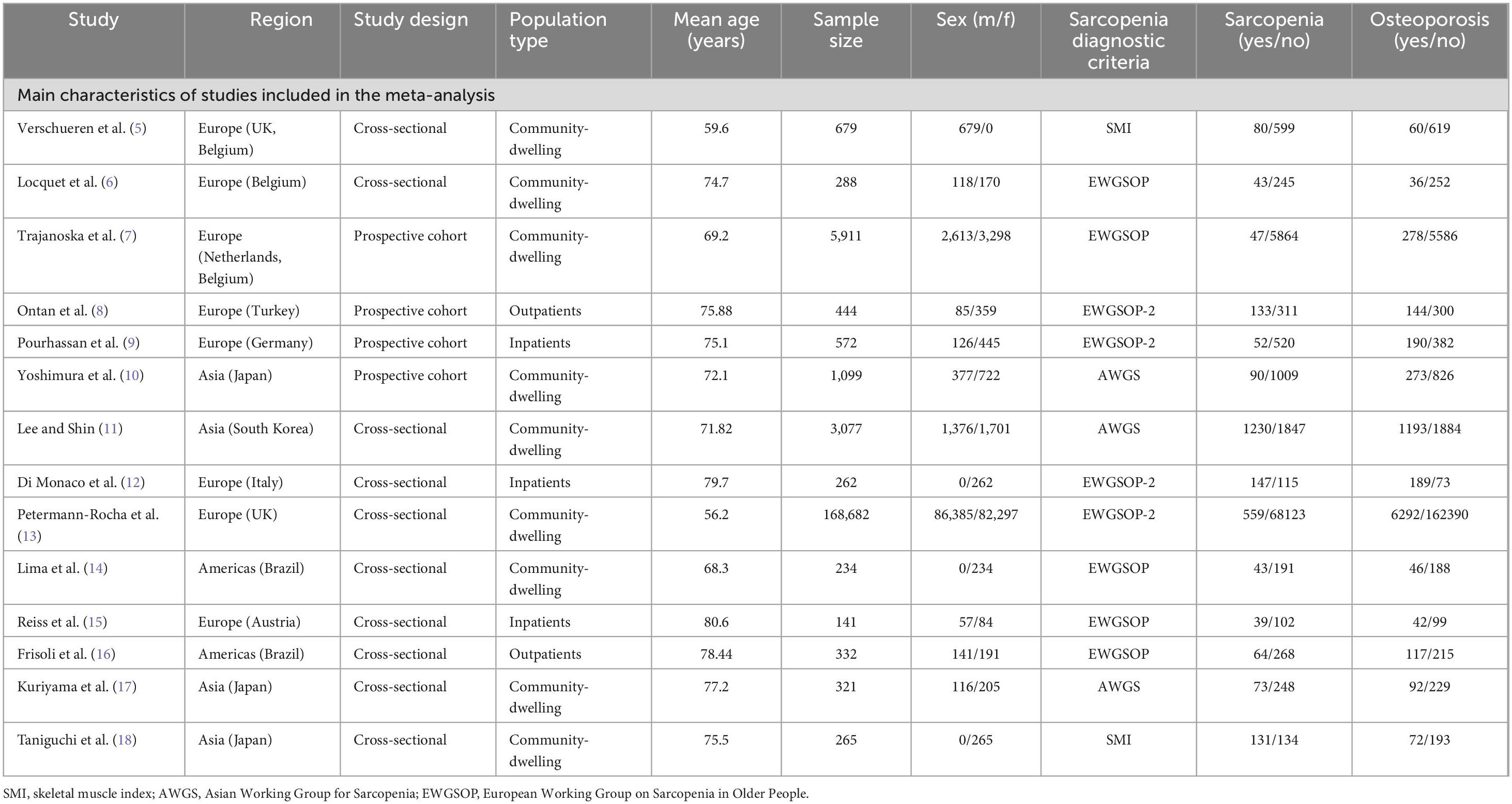 Citation: Jin S, Zheng F, Liu H, Liu L and Yu J (2025) The correlation between sarcopenia and osteoporosis in the elderly: a systematic review and meta-analysis. Front. Med. 12:1603879. doi: 10.3389/fmed.2025.1603879