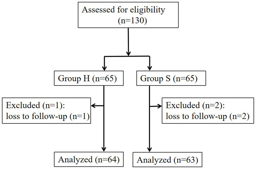 This was a single-center, randomized, controlled trial conducted at Wangcang People’s Hospital in Sichuan Province, China. The research was conducted in compliance with the CONSORT guidelines for reporting clinical trials.