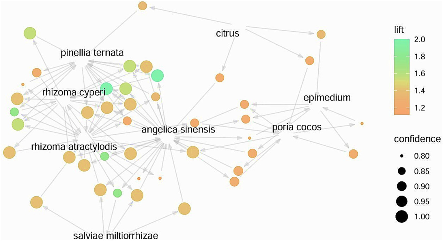 A total of 14 articles, involving 1,163 patients and 7 prescriptions, were included. Network meta-analysis indicated the following: Qihuang Zengmin Decoction + WM may be optimal for overall efficacy (Confidence in Network Meta-Analysis [CINeMA]: moderate confidence); Cangfu Daotan Decoction + WM showed superiority in reducing BMI (CINeMA: moderate confidence); Method of Regulating and Supplementing Spleen and Kidney + WM most effectively improved HOMA-IR (CINeMA: moderate confidence); Cangfu Daotan Decoction + WM best regulated LH (CINeMA: moderate confidence); Heshi Powder + WM medicine most effectively reduced testosterone (CINeMA: moderate confidence). Herbal Regularity analysis revealed core herbs for the treatment included Rhizoma atractylodis, Poria cocos, Angelica sinensis, Pinellia ternata, and Epimedium. The herbal cluster, including Epimedium, Poria cocos, Angelica sinensis, Citrus, Spina gleditsiae, Salviae miltiorrhizae, Rhizoma atractylodis, Pinellia ternata, and Rhizoma cyperi may be the core prescription for the treatment of obesity-type PCOS.